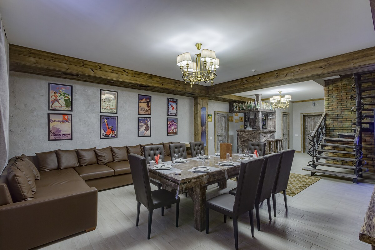 Skildu vandamálin eftir í kyrrlátu andrúmslofti þessarar einstöku eignar. Ótrúlegt 360 gráðu útsýni til fjalla og borgar. Hreint loft,rúmgott svæði, grillaðstaða,faglegt AST-karaókí,king-size rúm,hrein rúmföt, handklæðasett, sturtugel,sjampó,fljótandi sápa, 12 manna diskasett,stór notaleg verönd með mögnuðu fjalla- og borgarútsýni,gönguleiðir, gönguleiðir,staðsett á skíðasvæðinu,sundlaug,rússneskt bað