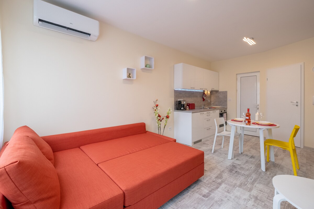 Hlýleg, lítil og snjöll stúdíóíbúð okkar býður upp á þægindi. Fullkomið fyrir vinnuferðir og ferðalanga sem eru einir á ferð. Herbergið er með notalega svefnaðstöðu með þægilegu rúmi, snjöllum eldhúskrók, baðherbergi og myrkvunargluggatjöldum og loftkælingu til að hvílast. Stórir gluggar flæða yfir rýmið með dagsbirtu. Rútur til miðborgarinnar eða flugvallarins taka aðeins 10-15 mínútur og fara framhjá umferð með sérstökum akreinum.
