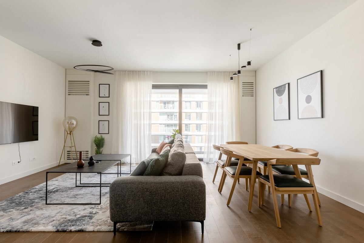 Verið velkomin í íbúðina okkar á 10. hæð í Belgrad Waterfront-samstæðunni! Íbúðin okkar er allt sem þú þarft þegar þú ert að leita að stórri sjálfstæðri leigu með hámarks næði. Íbúðin er tilvalin fyrir stórar fjölskyldur eða fjögur pör, hægt er að taka á móti tveimur gestum í viðbót á aukarúmunum. Þessi vel þekkta samstæða býður upp á rómantískar gönguleiðir meðfram bökkum Sava-árinnar, mismunandi kaffihúsa, veitingastaða, næturklúbba og verslana - allt er í aðeins nokkurra skrefa fjarlægð frá þér.
