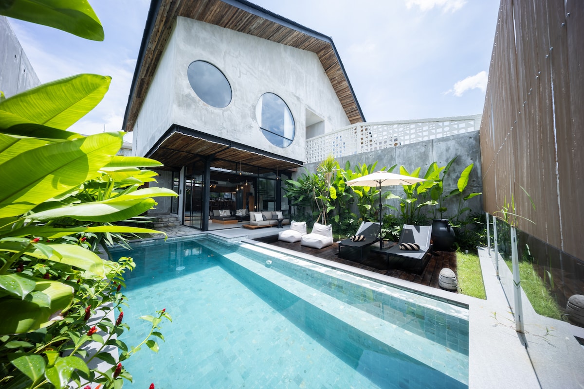 Lúxus 1 svefnherbergis einkavilla staðsett í hjarta Pererenan! Slakaðu á í næði með eigin sundlaug og stílhreinum húsgögnum. Við erum í göngufæri frá öllum kaffihúsum - getum ekki fengið betri staðsetningu í flotta úthverfi Pererenan, sem er einnig í 5 mínútna akstursfjarlægð frá hjarta Canggu og 800m á ströndina. Húsið er með fullbúið eldhús, gaseldun, Delonghi espressóvél, 43" sjónvarp (ókeypis Netflix), kalda loftræstingu, risastórt baðker og eigin einkasundlaug.