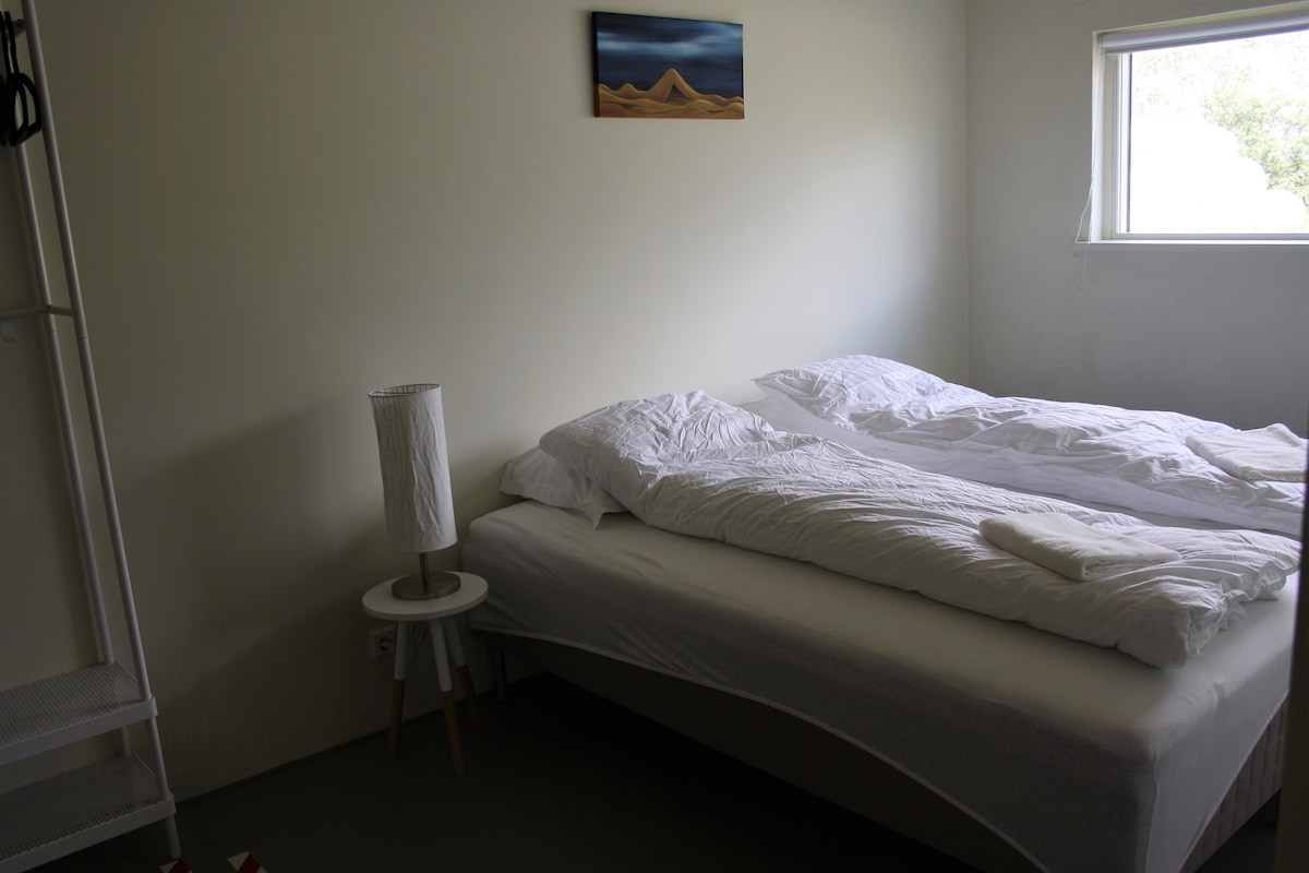 There is a beautiful view from the cabin towards the mountain range Fljótshlíð and the Tindfjallajökull glacier. The cabin is the perfect place to stay if you visit South Iceland. It is near many main attractions, such as waterfalls, glaciers, black beaches, and volcanoes. The cabin has space for four people, with one bedroom with a double bed and one bunk bed with two beds in the living space. Small kitchen and living space, as well as a bathroom with a shower, good internet and a smart TV