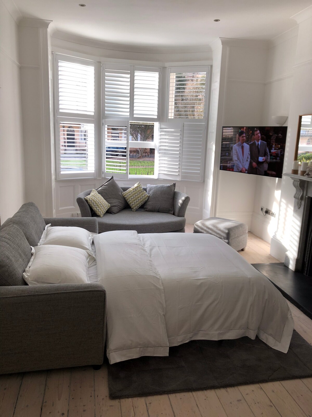 Njóttu ótrúlegrar dvalar okkar í glæsilegu, miðsvæðis, fyrstu hæð, svölum íbúð, sett í breyttri Regency byggingu í tísku Kemptown Brighton. Ljós flæðir inn um 3 glugga í fullri lengd, sem horfa út til sjávar. Íbúðin er með aðgengilegum svölum; er full af upprunalegum eiginleikum: hátt til lofts með skreytingum, arni og upprunalegu viðarhlerunum; sem og GCH, opnu skipulagi, vel búnu eldhúsi, snjallsjónvarpi, nýuppsettri sturtu (ekkert bað) og notalegu hjónaherbergi.
