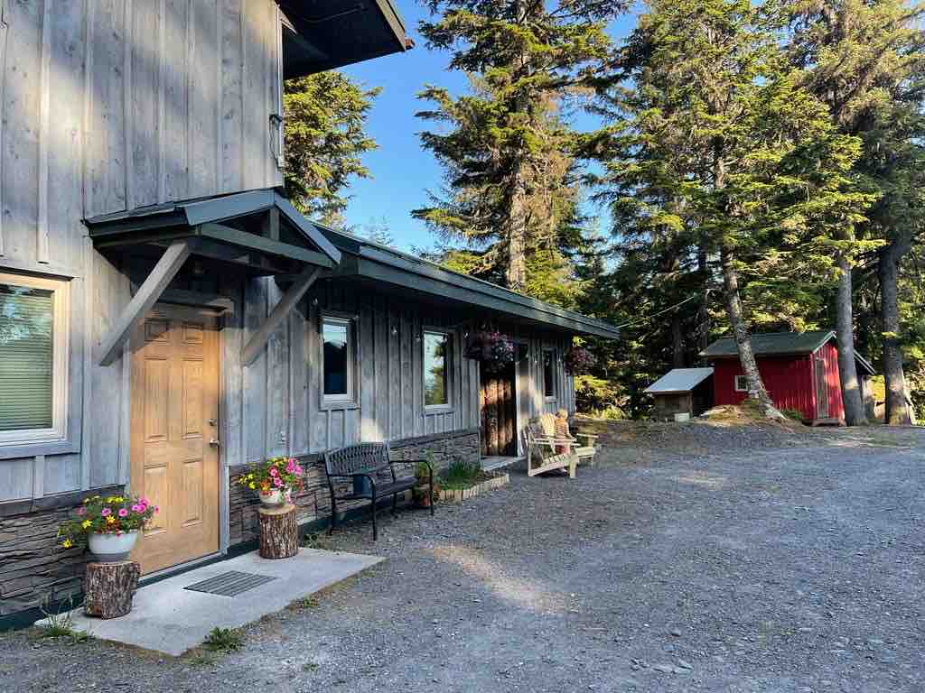 VAR AÐ LESA UMSAGNIR frá gestum okkar! „Loftið“ er gullfalleg og mjög sérstök og einstök eign. Raðað af AirBNB á efstu 1% heimilanna. Staðsett á 3 hektara svæði í hlíðinni í miðbæ Homer með mögnuðu útsýni yfir Homer Spit, Kachemak Bay, Beluga Lake og fleira. Umkringt gróskumiklum, töfrandi görðum. Njóttu þessarar friðsælu, fallegu og persónulegu umgjörð með mögnuðu útsýni og glæsilegum görðum. Gæði, sérsniðin innanhússfrágangur á 5 stjörnu hóteli.