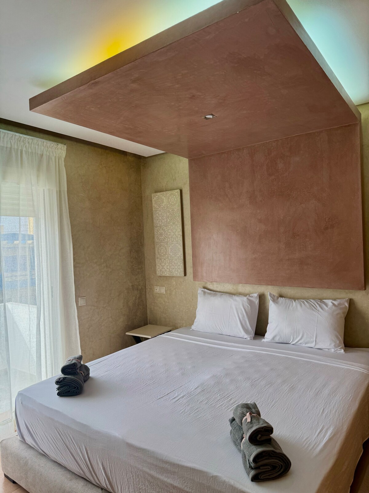 Skildu hversdagsleikann eftir. Hér býður hvert smáatriði þér að slaka á og aftengja🌅 Þessi bjarta og nútímalega íbúð er í stuttri göngufjarlægð frá sandinum og býður upp á meira en gistingu. Hún er róleg milli sjávargolunnar og mjúkrar birtu. 🛏️ Tvö rúmgóð svefnherbergi, þrjú notaleg rúm ☕ Morgunkaffi með meðfylgjandi hylkjum og sólarljós streymir í gegnum stofuna 🚗 Sjálfsinnritun, gjaldfrjáls bílastæði, þráðlaust net með trefjum, loftræsting og miðstöðvarhitun 📺 Þrjú sjónvörp með Netflix og IPTV Mehdia er fyrirhafnarlaus