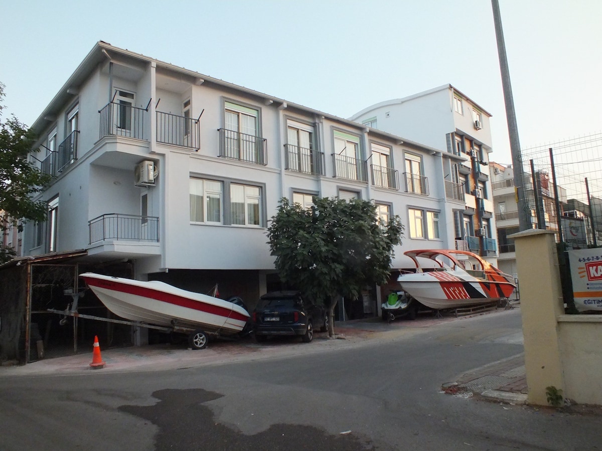 „Halló! Verið velkomin. Við bjóðum upp á hreina íbúð á miðlægum stað, nálægt öllum samgöngumöguleikum. Þægileg dvöl á öllum árstíðum bíður þín í örugga hverfinu okkar og íbúðarhúsinu með loftkælingu og hitara í sérherberginu þínu. Það kostar ekkert að nota eldhús, stofu, svalir, salerni og baðherbergi. Við erum aðeins í 15 mínútna göngufjarlægð frá Deniz og Kaleiçi. Auðvelt er að komast að gistiaðstöðunni okkar með einni ferð frá flugvellinum og rútustöðinni. Bókaðu áhyggjulaus! “