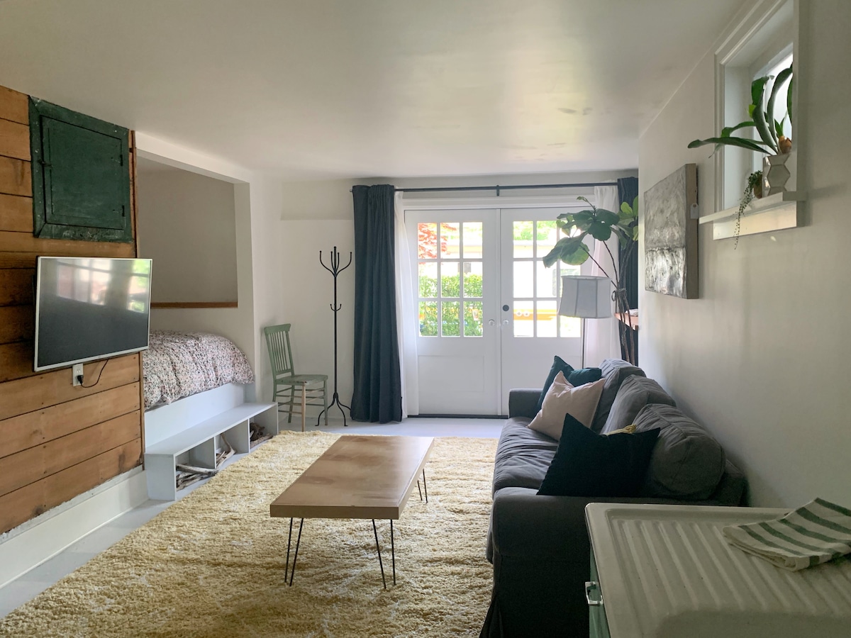 Inspired by the show Tiny House Nation, I thought it would be fun to convert my small detached garage into my vision of a comfortable and modern living space with all the amenities. It's approx. 210 sq ft or 11 x 19 ft but has the feel of a much larger place . We are located in an amazing spot on the top of Queen Anne. Macrina's Bakery is just 100 ft along with the #2 Metro bus to take you downtown in just 10 minutes. We feel lucky to live in such a beautiful neighborhood!