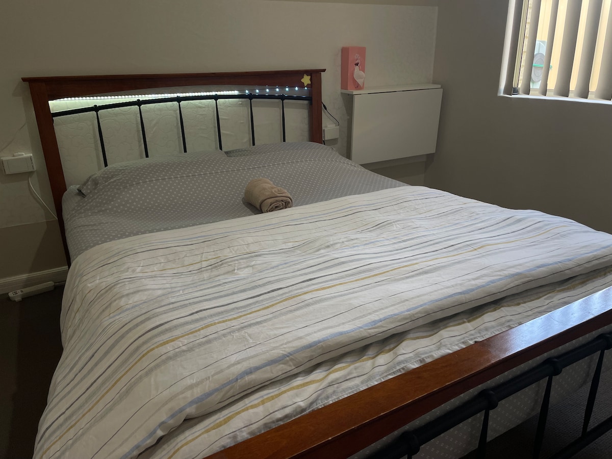 *Um húsið* Þetta er þriggja svefnherbergja villa sem deilir húsi með eiginmanni mínum og mér. Við eigum stundum vin sem gistir í nokkrar nætur þegar hann vinnur í FIFO. * Herbergið þitt * Verður búið hjónarúmi, litlum ísskáp, sjónvarpi, skrifborði og fataskáp. * Deila rýmum * Stofa, eldhús, borðpláss, baðherbergi og sturta * Staðsetning* 10 mín akstur á flugvöllinn, 15 mín til CBD. Strætisvagnastöð er í 3 mínútna göngufjarlægð, verslunarmiðstöðin Belmont er í 10 mínútna göngufjarlægð, veitingastaðir, kaffihús og fleira.