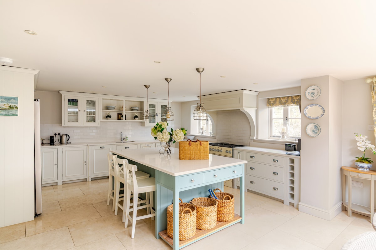 Þessi fallega uppgerða gamla mjólkurfarmur er staðsett á sveitabýli (5 mínútur frá Soho Farmhouse, DiddlySquat Farm) með útsýni yfir tún og hefur einkennin en með nútímalegri lúxus sem gerir það að fullkomnu sveitasetri. Sveigð loft og hlutlausir tónar gera rýmið létt og rúmgott. Mjög rúmgóð stofa með berum bjálkum, viðarofni og frönskum hurðum út í öruggan garð. Stórt eldhús og eyja til að njóta morgunverðar. Hjónaherbergi með útsýni yfir akur og verönd.