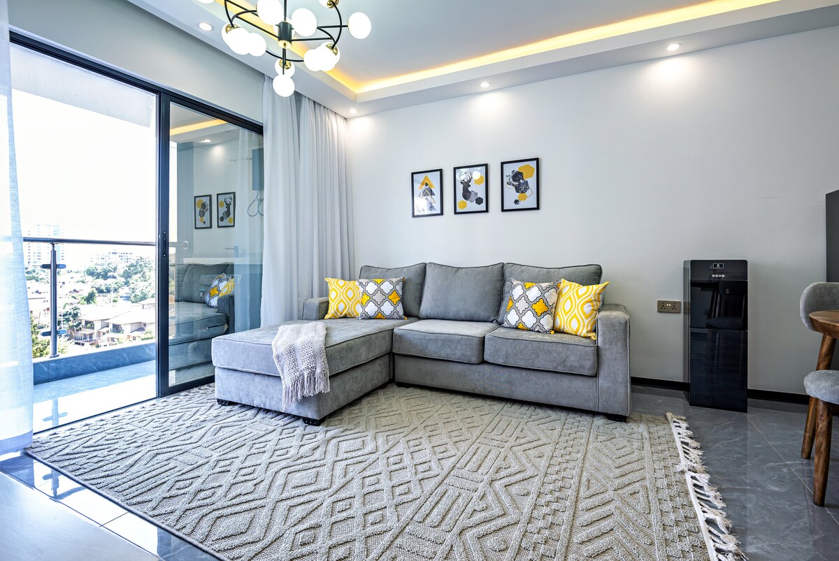 Enjoy a stylish experience at this centrally-located place. Relax at this unique and peaceful retreat. It is a brand new apartment ;clean with a 24 hour reception and care center. Its equipped with excellent hot shower, comfortable modern couches and high speed internet. You will find a well equipped kitchen, minimalistic concept and awesome city views. It has Has a backup generator you can walk to Yaya shopping mall, Adlife Plaza Mall, and Quickmatt supermarket Kilimani.
