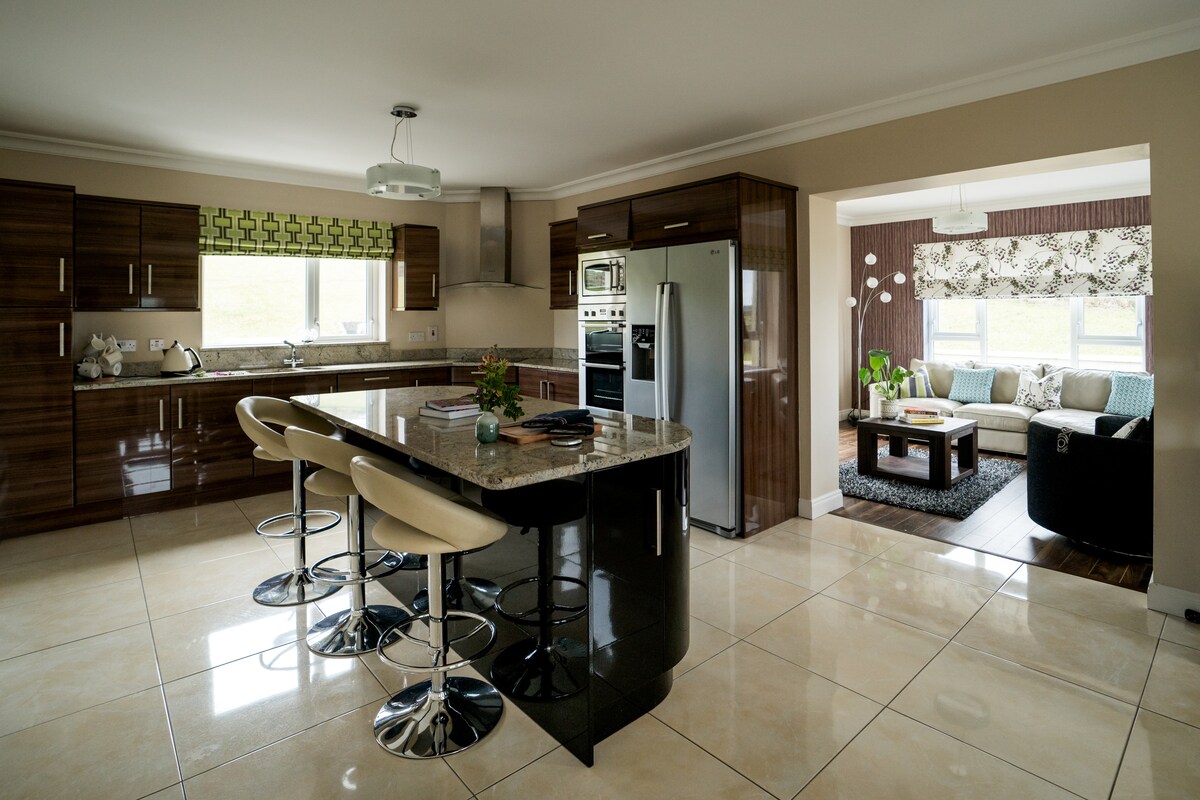 Verið velkomin í „the view“, magnað útsýni til allra átta frá 5 sýslum/donegal-flóa. Einkahús með 1000sf verönd .bbq. 4 svefnherbergi (2ensuite) . borðstofa með opnu eldhúsi. Setustofa og aðalbaðherbergi á jarðhæð . Poolborð uppi. Húsið er u.þ.b. 3km frá kilcar . 8km til Carrick og killybegs .located on the wild Atlantic. Ef þú vilt skoða,ganga, ganga um,spila golf, veiða og taka þátt í craic-staðnum sem þú munt falla fyrir í kílómetravagni og nærliggjandi svæðum!!