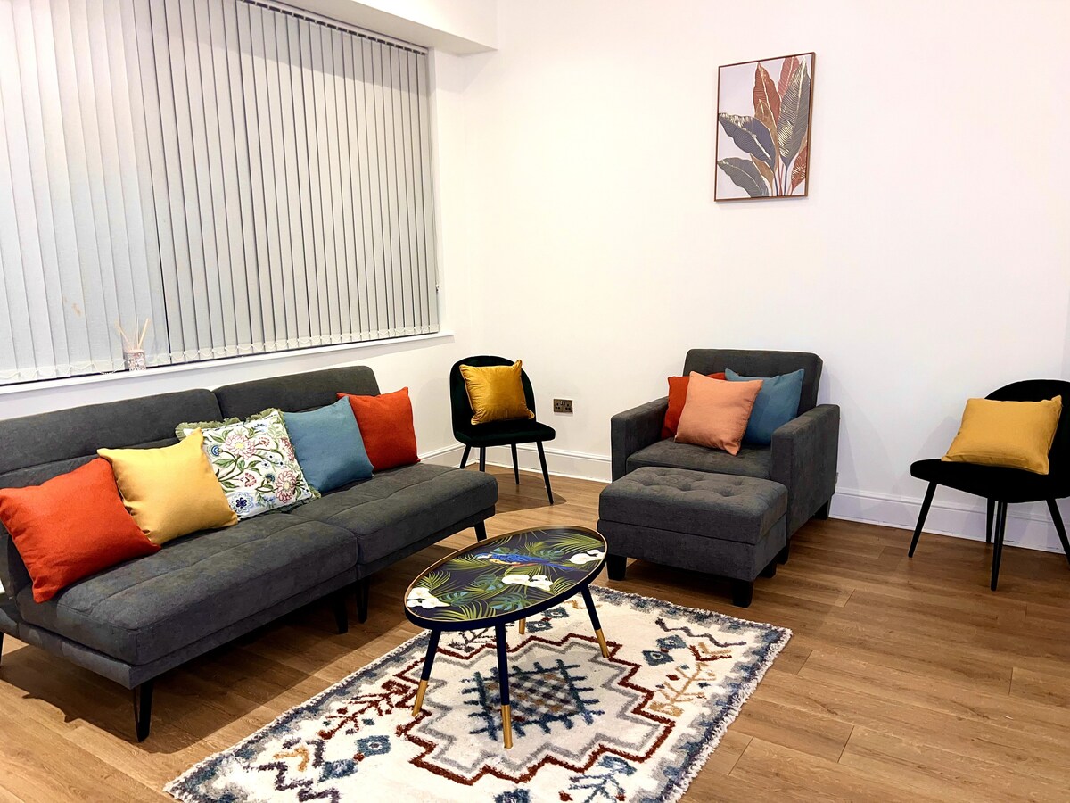 Spacious 2-bed, 2-bath apartment in Leicester city centre, perfect for up to 7 guests. This modern retreat on Highcross Street features an open-plan living area, a dedicated workspace with Wi-Fi, smart TVs and a fully equipped kitchen. Ideal for families, groups, and business travellers looking for a comfortable and convenient base to explore the city. Enjoy hotel-quality linen and a seamless self-check-in experience.