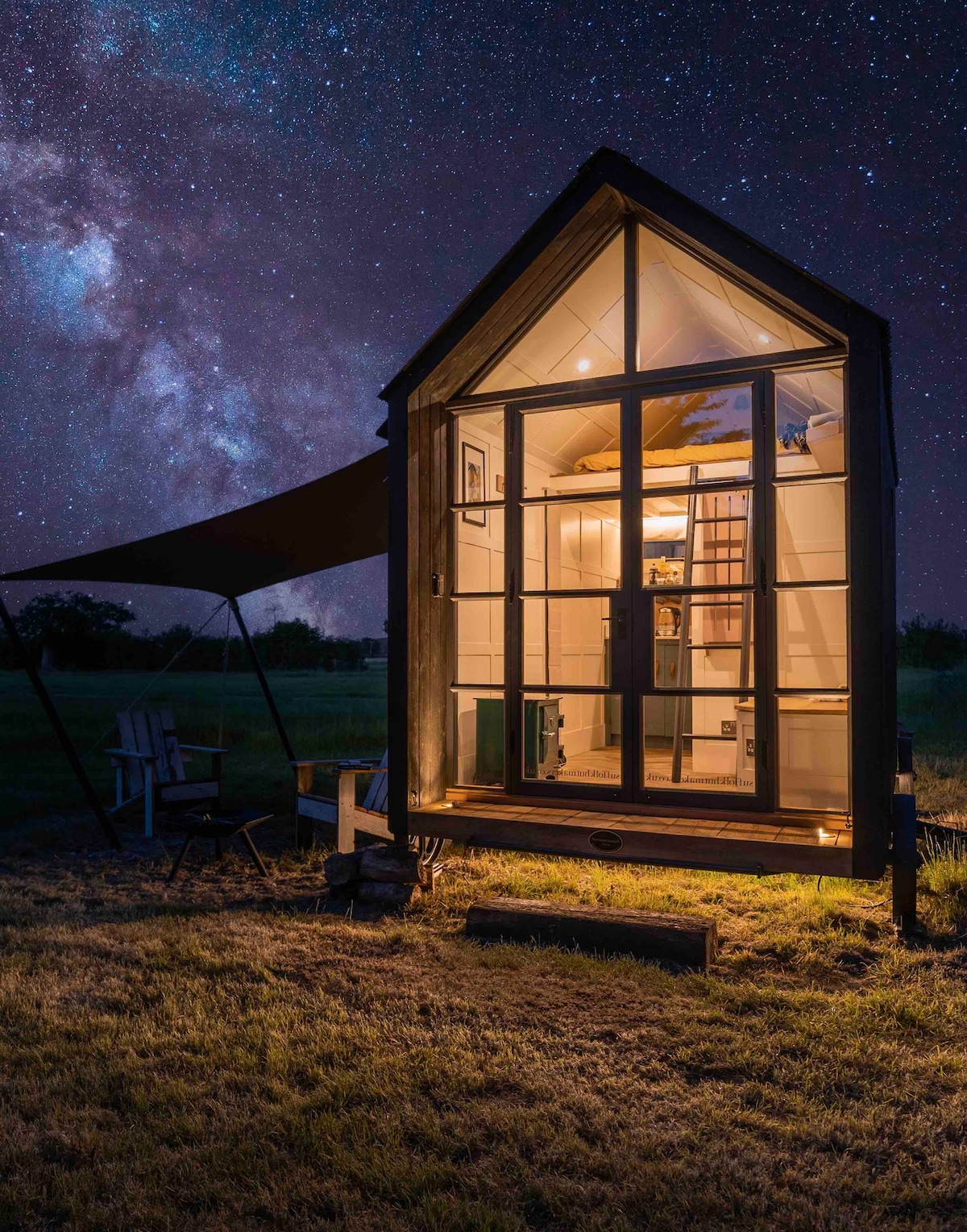 Skáli við vatnsbakkann fyrir stjörnusjónauka