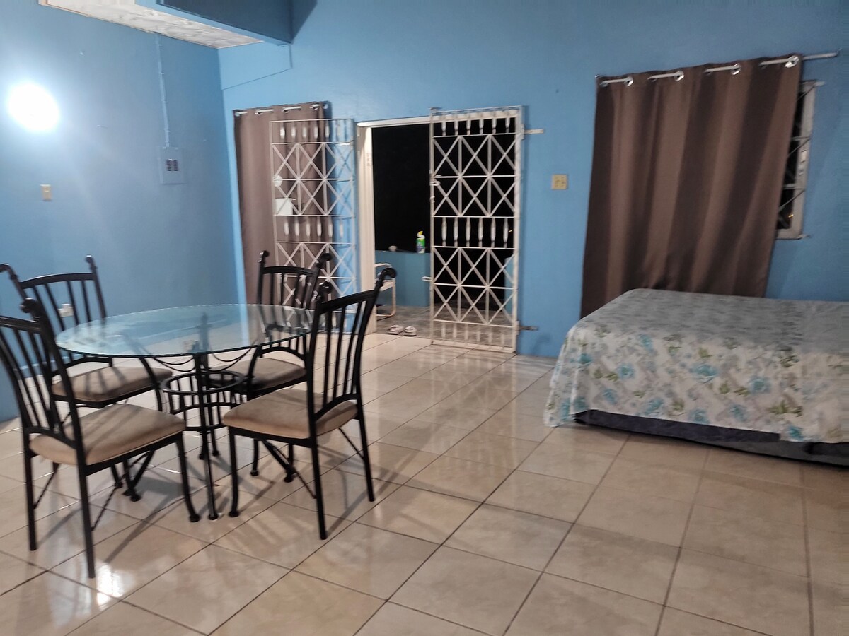 Falleg stúdíóíbúð í rólegu hverfi. Íbúðin er staðsett miðsvæðis nálægt háskólum, sjúkrahúsum, verslunum, veitingastöðum o.s.frv. Tveggja mínútna akstur til Sovereign Centre (með mathöll) og sjö mínútur til Bob Marley Museum