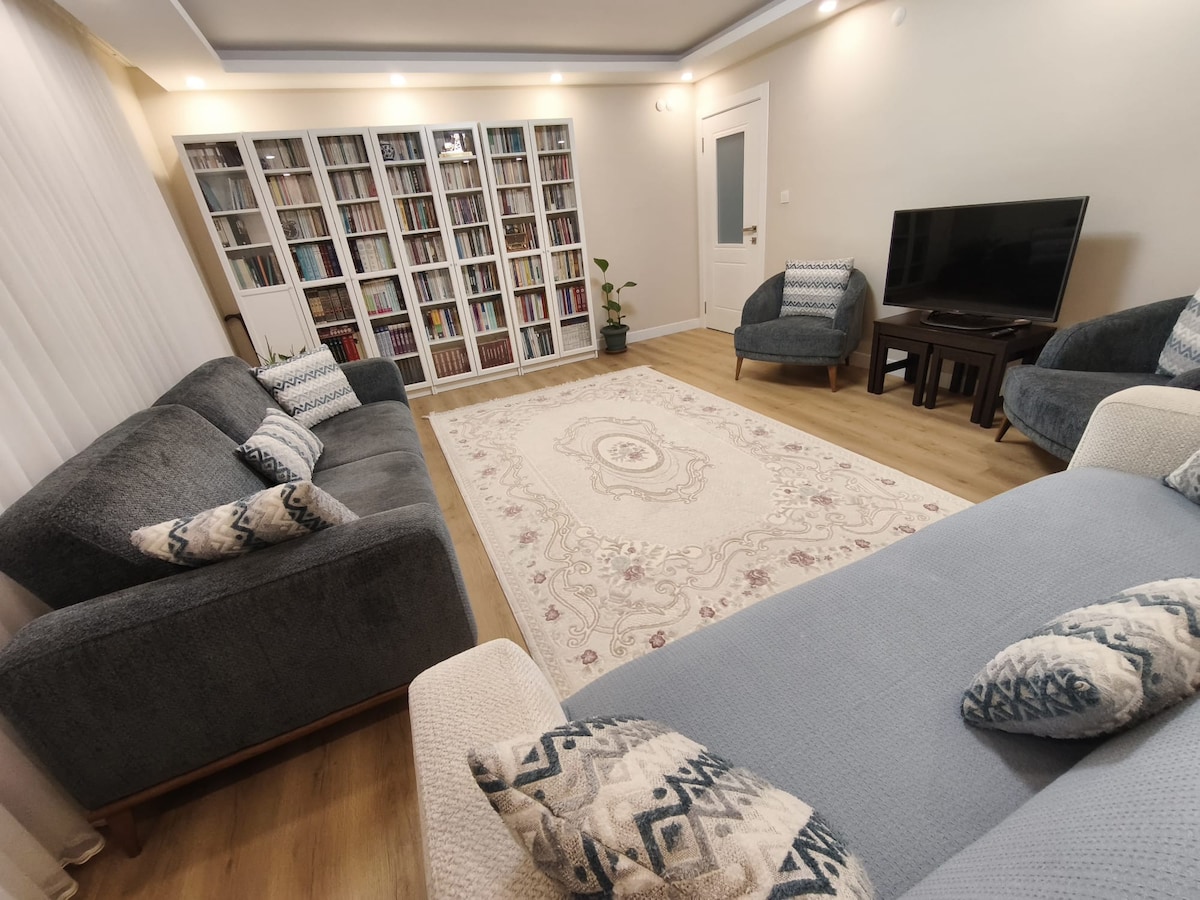 Stylish and cozy 3-bedroom + 1 living room apartment in the heart of Ankara! This peaceful city-center retreat offers a beautifully decorated living room, perfect for relaxing after exploring the vibrant surroundings. Just steps away from supermarkets, street shops, and the lively pulse of Ankara. Ideal for families or groups seeking comfort and convenience. Fully equipped kitchen for a comfortable stay with all essentials provided. 50 Mbps internet, Cable TV, Netflix.