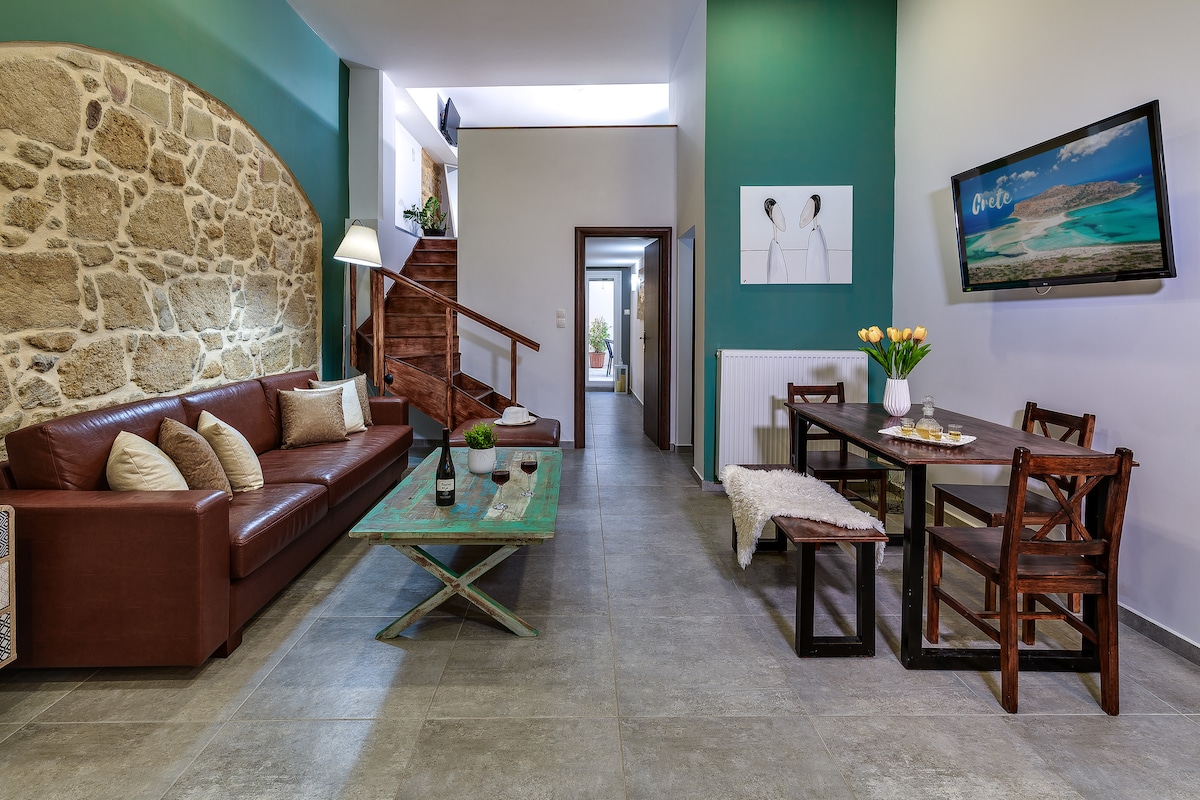 Ottoman (40 fermetra) hús frá 19. öld, endurbyggt að fullu árið 2021, staðsett í friðsælu litlu þorpi nálægt Kissamos (Kasteli), í 55 mínútna fjarlægð frá flugvellinum í Chania. Afslappandi og í lágmarki með boho-stemningu, allt til reiðu til að taka á móti glæsilegum pörum, vinum, einmana ferðalöngum eða jafnvel litlum og sveigjanlegum fjölskyldum (hægt er að nota sófa sem lítil rúm fyrir börn). Opin fjallasýn frá gómsætu veröndinni. Einkaframgarður með skugga sem er tilbúinn til að bjóða upp á morgunverð eða kvöldverð undir stjörnubjörtum himni í fullu næði.