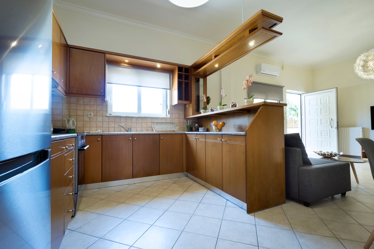 Farðu í afslappaða gönguferð meðfram ströndinni og deildu svo kvölddrykkjum við bistro-borðið í notalega bakgarðinum við þessa sólríku vin á jarðhæð. Slakaðu á í ruggustólnum Acapulco áður en þú sötrar snarl í flotta gráa eldhúsinu. Húsið er á jarðhæð og hentar vel fyrir pör og fjölskyldur. Inni er vel skipulagt með fullbúnu eldhúsi, stofu með borðstofuborði og 1 svefnherbergi og einu sérbaðherbergi. Það er einnig búið öllum nauðsynlegum áhöldum, þægindum og mörgu fleiru. Íbúðin er staðsett á jarðhæð. Við bíðum eftir þér í húsinu þegar þú kemur til að taka á móti þér, sýna þér húsið og afhenda þér lyklana. Auk þess munum við útvega þér borgarkort, stinga upp á góðum stöðum til að heimsækja og dægrastyttingu. Við verðum alltaf til taks meðan á fríinu stendur ef þú skyldir þurfa aðstoð við eitthvað. Rólegt, friðsælt Chalepa hefur ríka sögu, með fallegum gömlum nýklassískum stórhýsum og er talið mest aristocratic fjórðungur Chania. Í nokkurra mínútna fjarlægð frá húsinu er lítil klettaströnd sem lítur út eins og sundlaug. Í nágrenninu er strætóstoppistöð, aðeins 2 húsaraðir í burtu, sem þjónustar strætisvagna Sodi og Chalepa, sem báðir koma og fara niður í bæ. Mjög nálægt þessari strætóstoppistöð er leigubílastöð. Annars getur þú alltaf komið á bíl. Það er nóg af ókeypis bílastæðum í boði rétt fyrir utan íbúðina. Fyrir bókanir í meira en 10 nætur bjóðum við gestum okkar upp á viðbótarþrif og lín sem skiptir um íbúð án endurgjalds Rólegur, friðsæll Halepa á sér ríka sögu, með fallegum gömlum nýklassískum stórhýsum og er talið alræðislegasta hverfi Chania. Í nokkurra mínútna fjarlægð frá húsinu er lítil klettaströnd sem lítur út eins og sundlaug.