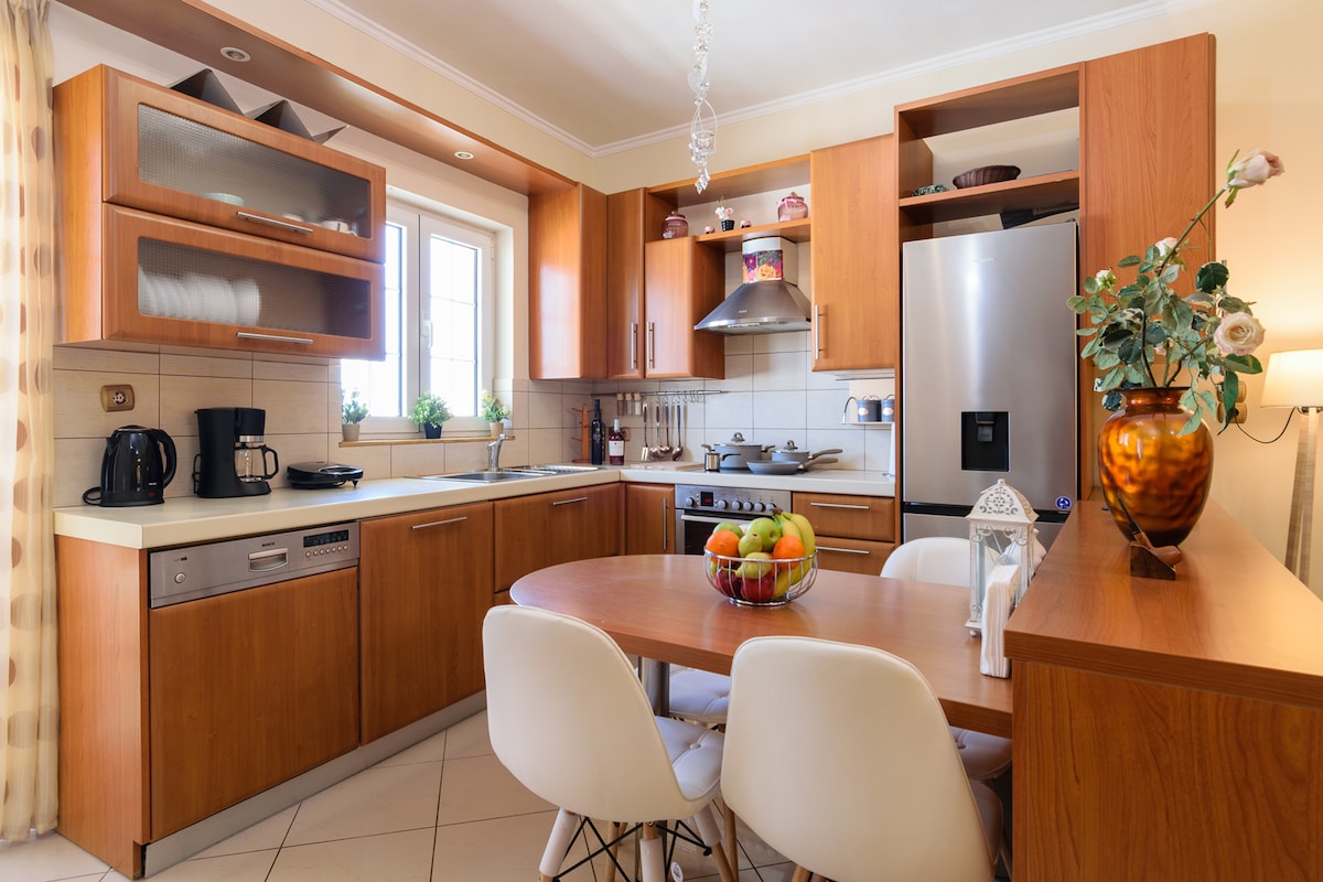 With great zeal and respect to our guests, we created a pleasant accommodation space with all the necessary conveniences. The apartment is fully furnished with a queen size -pocket sprigs mattress- bed, a fully equipped kitchen, and satellite smart TV. It’s located 100m. away from the Kalamaki beach which is awarded with a blue flag. It’s only 5 km away from the center of Chania. Nearby the apartment, our guests can find a bus stop, mini market, a pharmacy, a pizzeria, cafés and restaurants.
