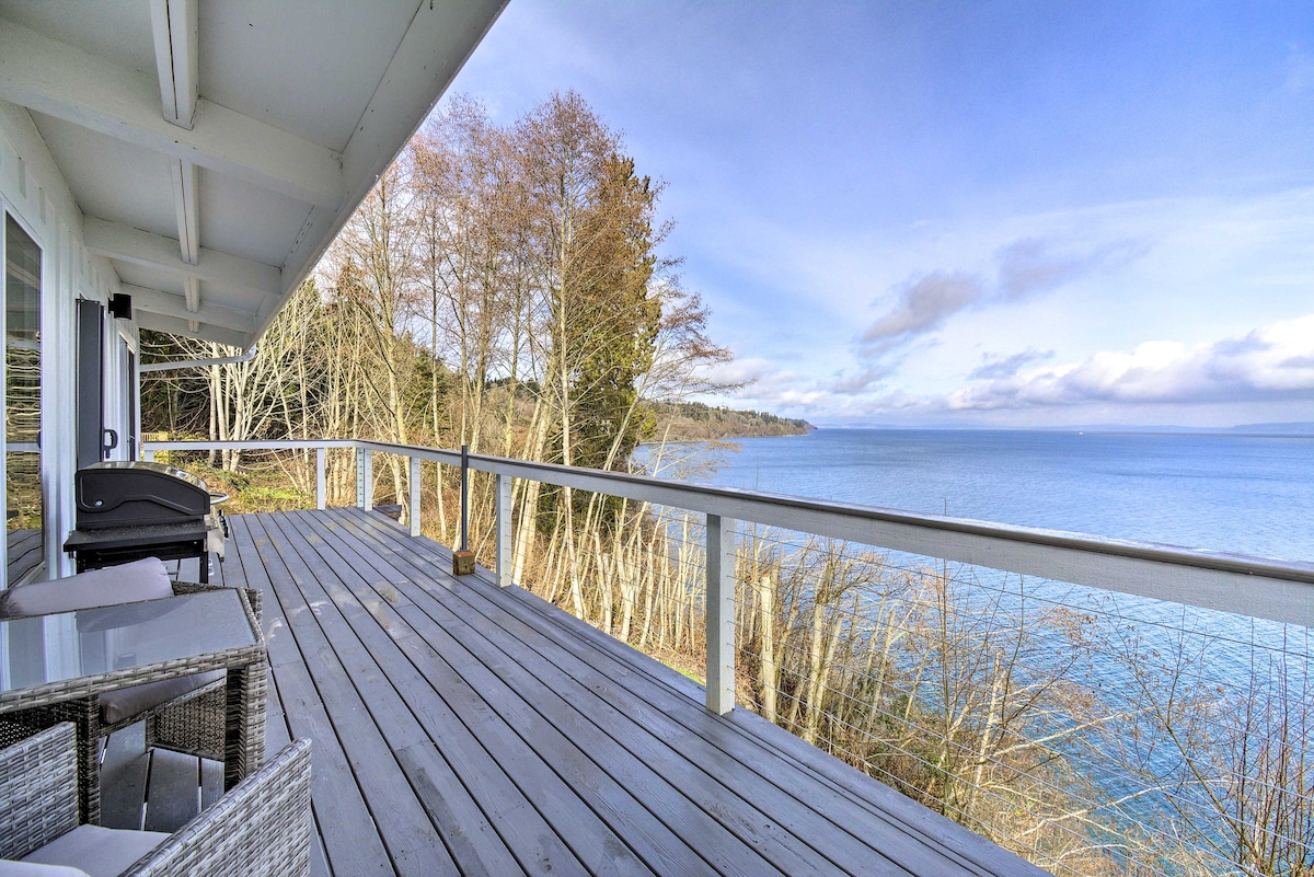 Take in unforgettable panoramic views of the calm waters of Puget Sound as you sip your morning coffee when you stay at this 4-bedroom, 3-bath vacation rental. Situated on 2 acres of land and boasting a multi-level deck, an updated kitchen, and a fully equipped game room, this spacious home has something for travelers of all ages! Spend your days lounging on one of the surrounding beaches or hiking through a nearby nature preserve before heading back to this retreat for a relaxing night in.