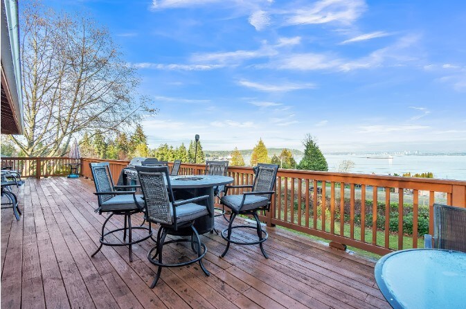 Verið velkomin í Puget Sound Escape- Gestrisnihúsið þitt! Slakaðu á og spilaðu eða njóttu vinnu og dvalar~ Njóttu dásamlegs útsýnis yfir Puget Sound og Seattle City-Scape! Heimilið er innréttað til að bjóða upp á þægilegt að komast í burtu með norðvesturhluta Kyrrahafsins. ÞÆGINDI: 4 svefnherbergi með sjónvarpi, heitum potti utandyra, útsýnispalli, própangrilli, borð- og eldstæði á verönd, hægindastólum, varðeldasvæði, W/D, 2 baðherbergjum, fullbúnu eldhúsi og 2 stofum til að breiða úr sér. 4 blokkir á ströndina, ferja 10 mín leið yfir til Seattle