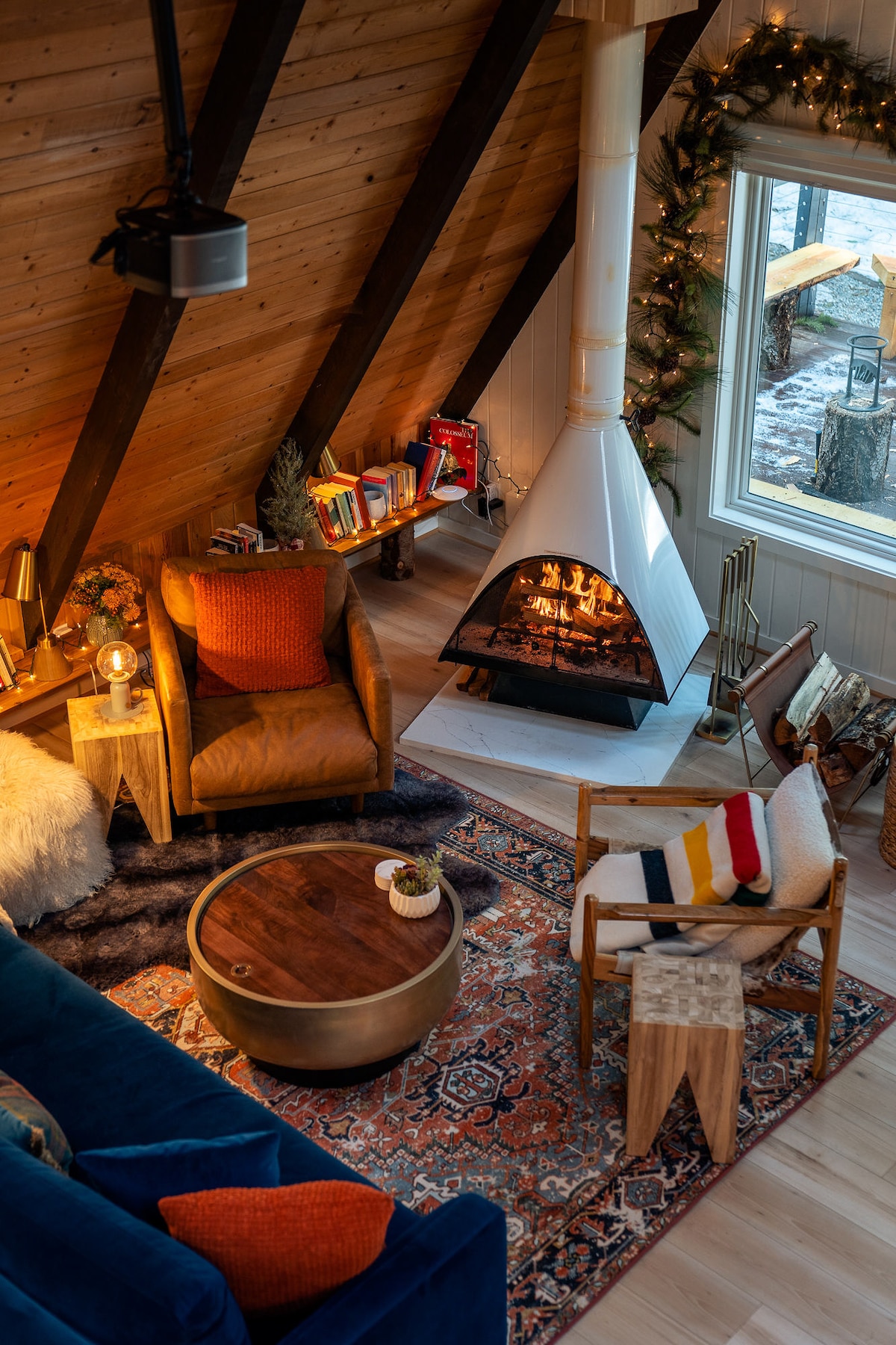 Heitur pottur, gufubað, sedrussturtu, king-size rúm og rafmagnsbíll