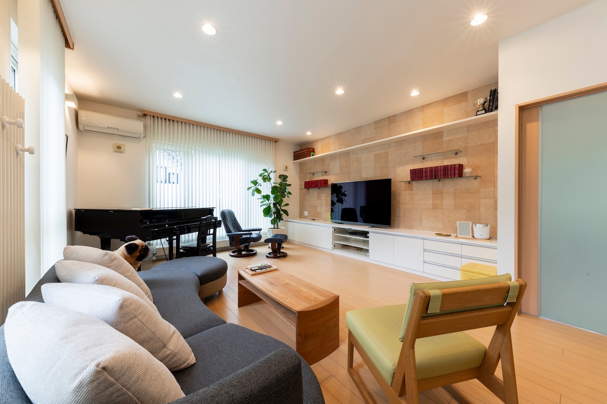 Allt einbýlishúsið í rólegu íbúðarhverfi gerir þig rólegan og afslappaðan. Gestgjafinn sem talar ensku, japönsku og kínversku hjálpar þér eins mikið og mögulegt er. Á 1. hæð eru stofa, eldhús, sturtuklefi, salerni og japanskt rúmherbergi. Á 2. hæð eru 2 rúmherbergi og salerni. Matvöruverslanir og strætóstoppistöð eru í 2 mín göngufjarlægð frá húsinu. Næstu stöðvar eru Fukuzumi og Oyachi(neðanjarðarlest) sem hægt er að komast með strætó. 30 mín með rútu eða 1 klukkustund með bíl að flugvellinum.