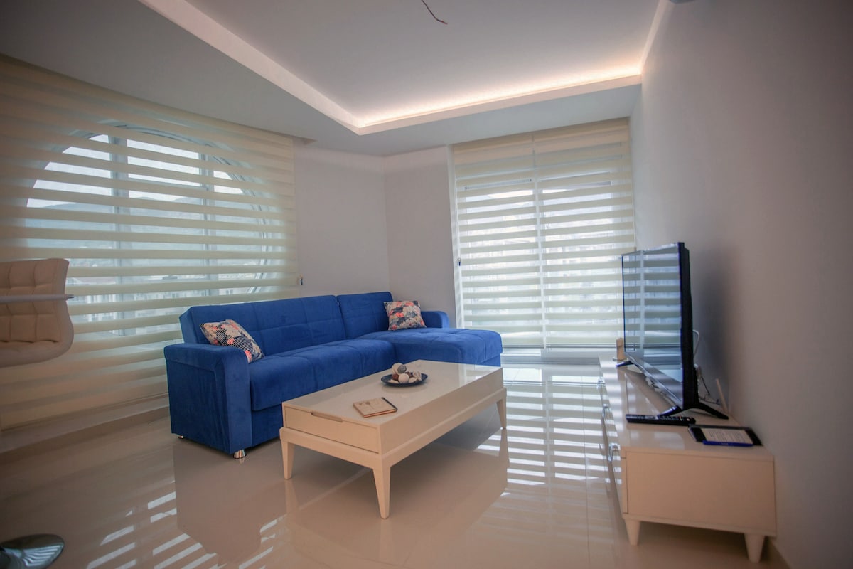 „Með opinberu leyfi fyrir skammtímaútleigu“ Verið velkomin í Beach Haven, afslappandi fríið ykkar. Þessi íburðarmikla íbúð með sjávarútsýni er staðsett við strönd Alanya -Útisundlaug ✔ -Upphituð laug innandyra ✔ -Krakkasvæði ✔ -Garður ✔ -Tyrkneskt bað og gufubað ✔ -Gym ✔ -Einkagöng með aðgang að strönd með sólbekkjum og sólhlífum ✔ -SJÓNVARP, ÞRÁÐLAUST NET ✔ -Öryggisgæsla allan sólarhringinn ✔ -Núll metrar að ströndinni ✔ -Útsýni yfir sjó og fjöll ✔