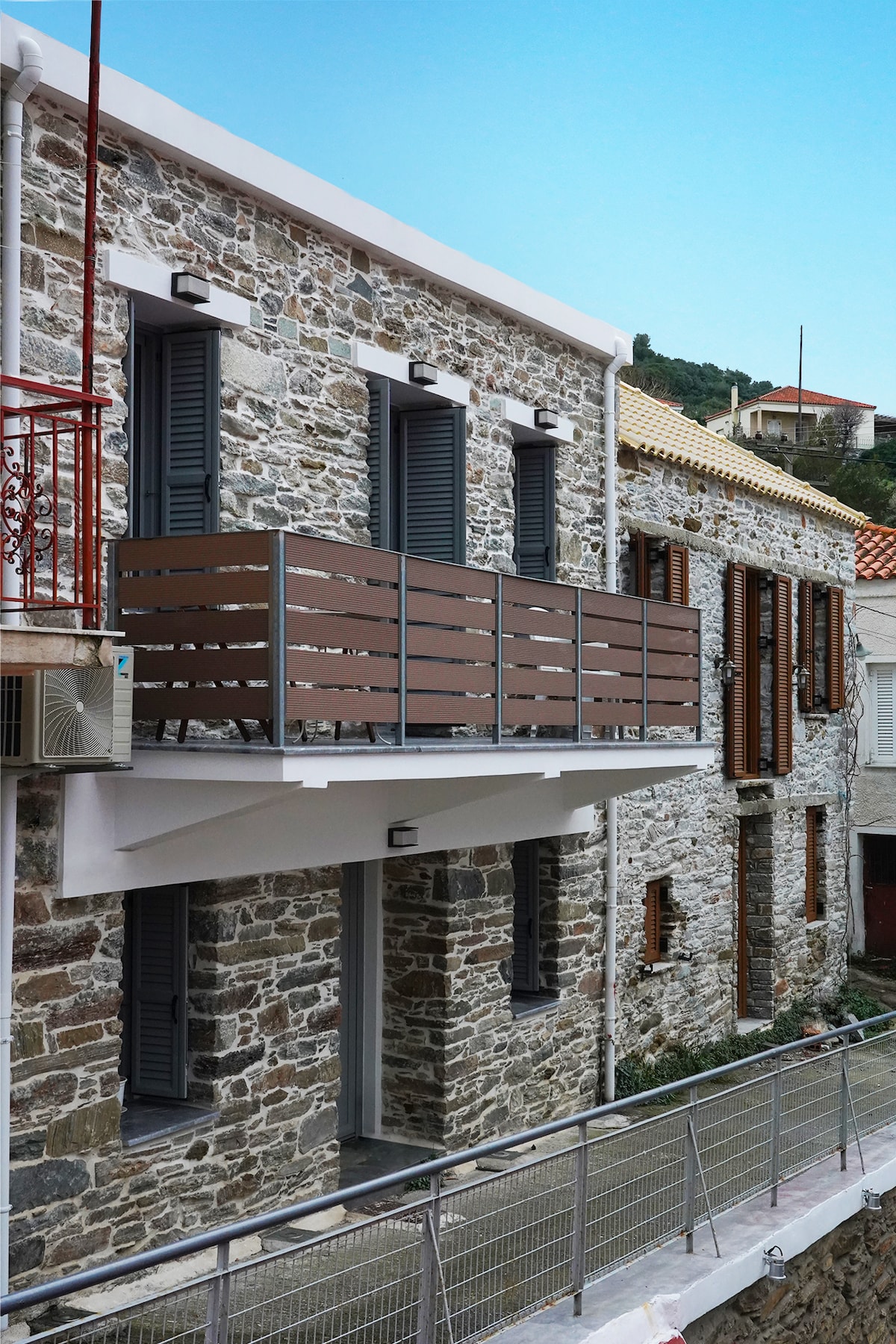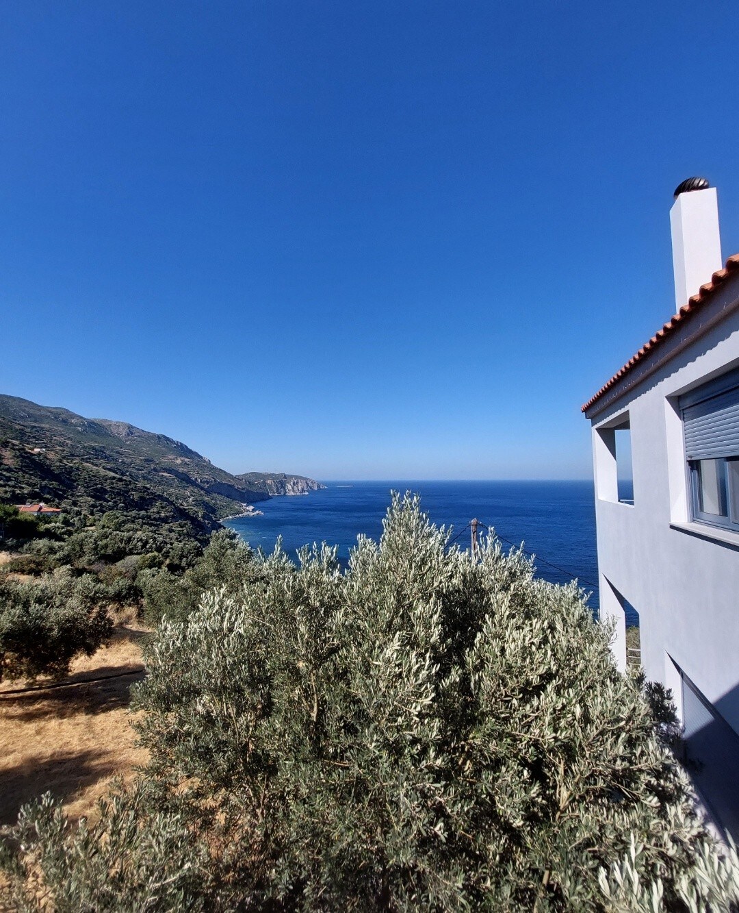 The house is located in the small Aegean village of Agii Apostoli, in Evia, just 120 km from Athens by car — no ferry needed. It is built in a panoramic position above the sea, overlooking the Aegean and the coastline. At the same time, it is only a 2-minute walk from the center of the village and the nearby crystal-clear, turquoise beaches. The house is 50 m² and features a private 36 m² stone-paved courtyard where you can enjoy the sea and the horizon.