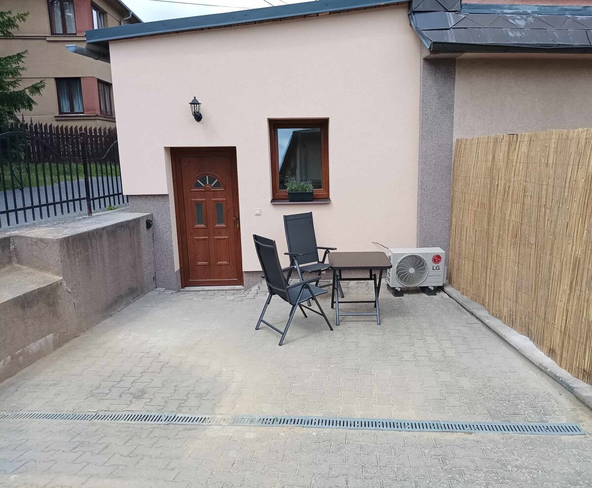 Lítið, notalegt hús sem veitir gestum nægilega næði á annarri hæð í garði okkar en húsið okkar er. Skipulag: Forstofa með baðherbergi og salerni, svefnherbergi með hjónarúmi, borðstofuborði, 2 stólum og sjónvarpi. Gestir geta einnig nýtt sér garðskála með arineldsstæði, grill og setusvæði. Hér er einnig eldhús og ísskápur (opinn frá apríl til nóvember). Veitingastaður - 1km, Matvöruverslun - 1,5 km, Svæðið Obri Sud - 2km, Vesec svæðið - 2km, Jested svæðið - 5km Vatn, kaffi, te - ókeypis