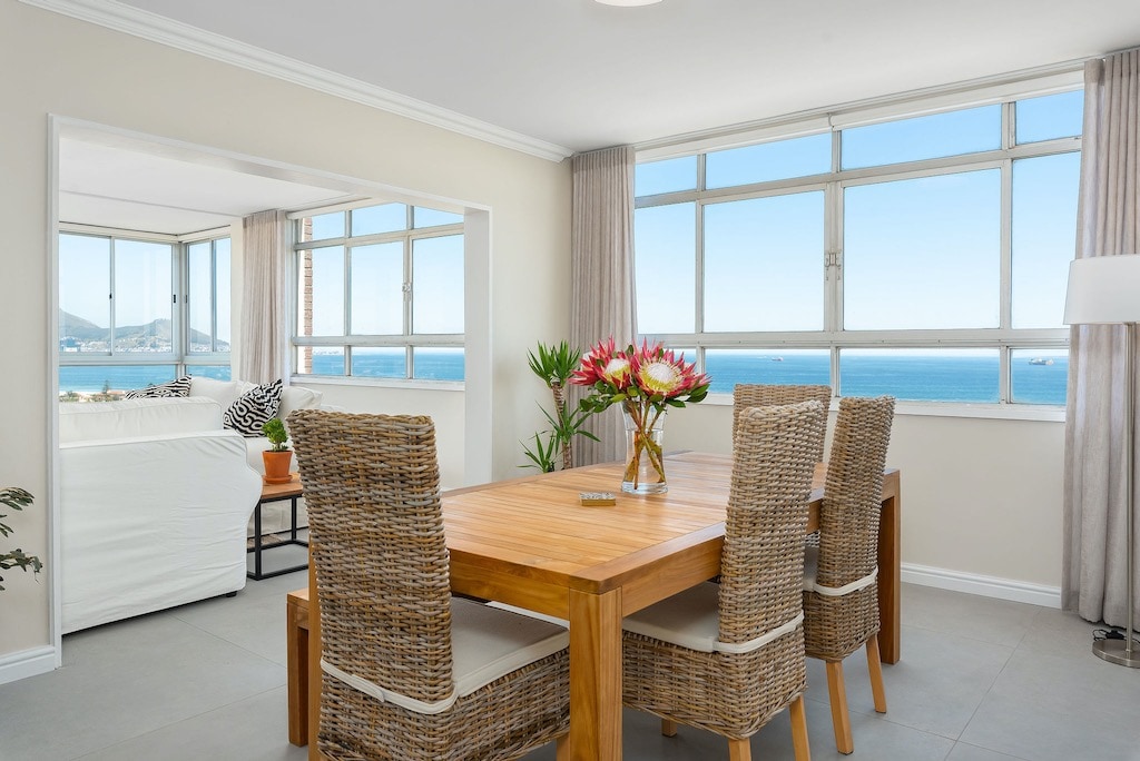 Welcome to this beachfront property. The light and open apartment is an easy 8km from Cape Town's city center. The spacious apartment has direct access to the beach as well as breathtaking table mountain and sea views. Fall asleep to the sound and smell of the ocean and wake up ready to enjoy the pool, Beach and Cape Town's many attractions. Has battery backup for WiFi and TV during load shedding. The following TV streaming services are included: AmazonPrime Video, Disney plus.