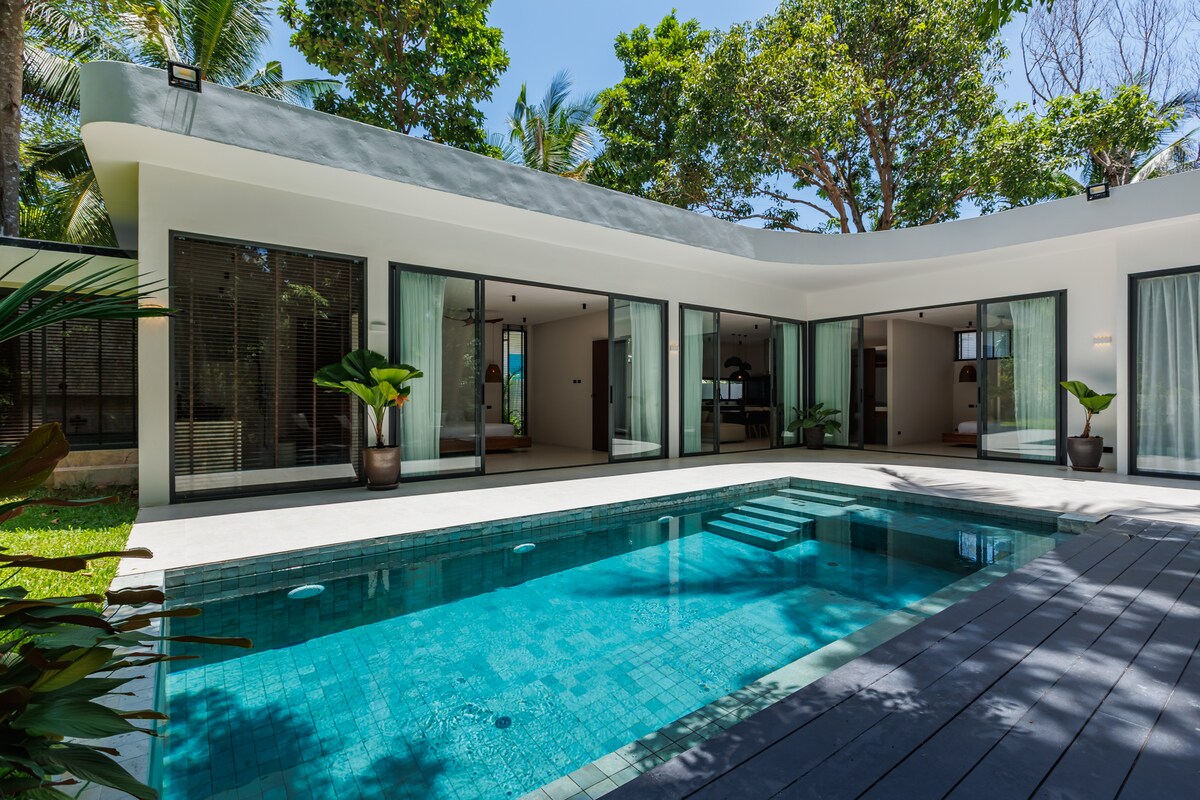 Velkomin (n) í hitabeltisstorminn Cocoon Villa Þetta gerir húsið einstakt, allt frá sófanum til sundlaugarinnar. Húsið er umkringt háu bambushliði til að fá meira næði. Staðsett efst á rólegri hæð á vinsælu svæði í Srithanu, næsta strönd er aðeins 3 mín. akstur með hlaupahjóli. Veitingastaðir, kaffihús, matarmarkaður og jógaskólar eru í aðeins 2 mín. akstursfjarlægð. Háhraða Fiber Optic Internet.