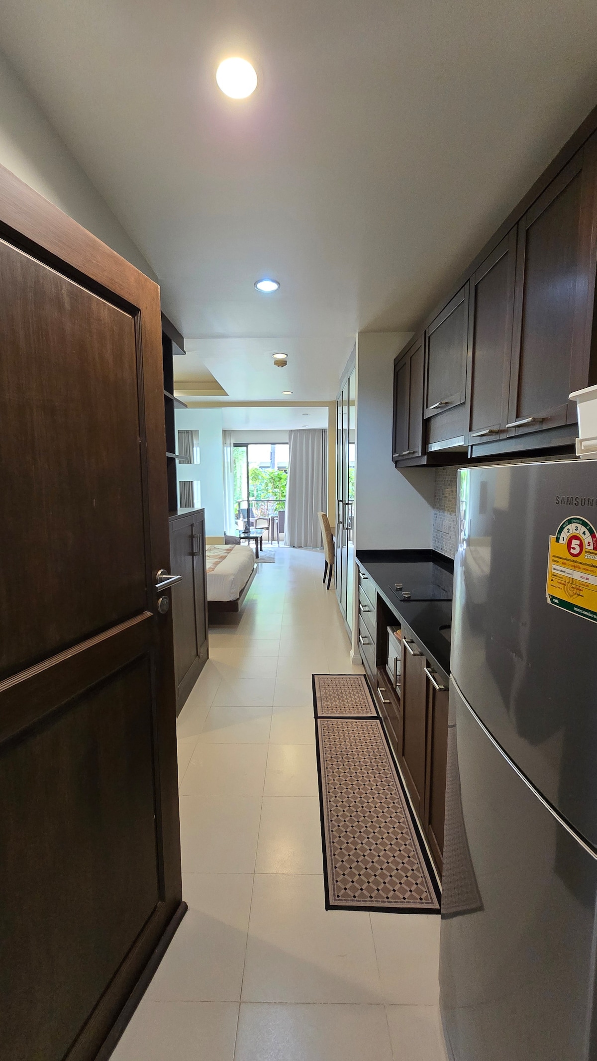 Upplifðu óviðjafnanleg þægindi í þessari einstöku íbúð á Koh Samui sem er vel staðsett steinsnar frá ströndinni. Þetta húsnæði er staðsett á friðsælli 4. hæð og státar af mikilli lofthæð, mögnuðu útsýni yfir sundlaugina og sjóinn og rúmgóðri stofu með úrvals og endingargóðum þægindum. Njóttu nútímalegs 3 metra eldhúss með eldavél, heitu vatni og lúxus regnsturtu sem tryggir fullkomna blöndu af stíl og virkni fyrir dvöl þína.