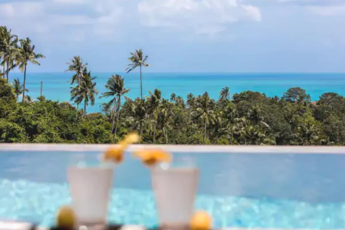 620 mílna lúxusvilla með 180° sjávarútsýni í hæðum Chaweng → Daglegur morgunverður og þrif → 25 m há sundlaug → Líkamsrækt, billard, pílukast og borðtennis → Gestrisni með starfsfólki á staðnum allan sólarhringinn (á ensku og taílensku) → Baðkar með steypu í→ eggi Hvert svefnherbergi með einkabaðherbergi → Háhraða internet og→ þráðlaust net Kvikmyndasjónvarp með Netflix → Bose-hljóðkerfi → Ókeypis kaffi og drykkjarvatn → Vatn og rafmagn innifalið → 10 m akstur á strendur → Frekari þjónusta í boði gegn beiðni