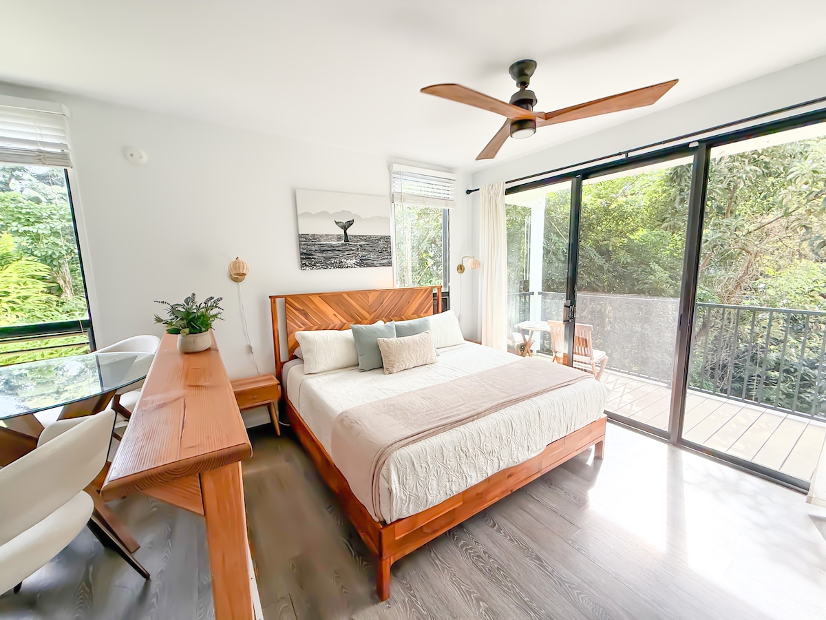 Komdu og njóttu Hawaii strandarinnar okkar! Einingin okkar státar af útsýni yfir frumskóginn, lanai utandyra, loftkælingu, fullbúnu eldhúsi og staðsetningu sem er meira en tilvalin! Við erum við hliðina á One Hotel úrræði, stutt 2 mínútna göngufjarlægð frá Hideaways sjávarútsýni og 10 mínútur niður á Hideways ströndina!