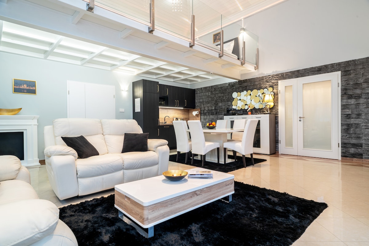 The Loft Esztergom – Stílusos apartman a Duna-parton Modern, családbarát apartman Esztergom belvárosában, közvetlenül a Duna-parton, a Bazilika és az élményfürdő közelében. Tágas, világos, letisztult kialakítású, ideális pároknak, családoknak és barátoknak. A reggelit az ár nem tartalmazza, igény esetén tudunk biztosítani 10EUR/fő/éj A vendégek előzetes jelzés esetén 20% kedvezményt kapnak az 1 perc sétára található élményfürdő belépőjéből. Éttermek pár perc sétára.