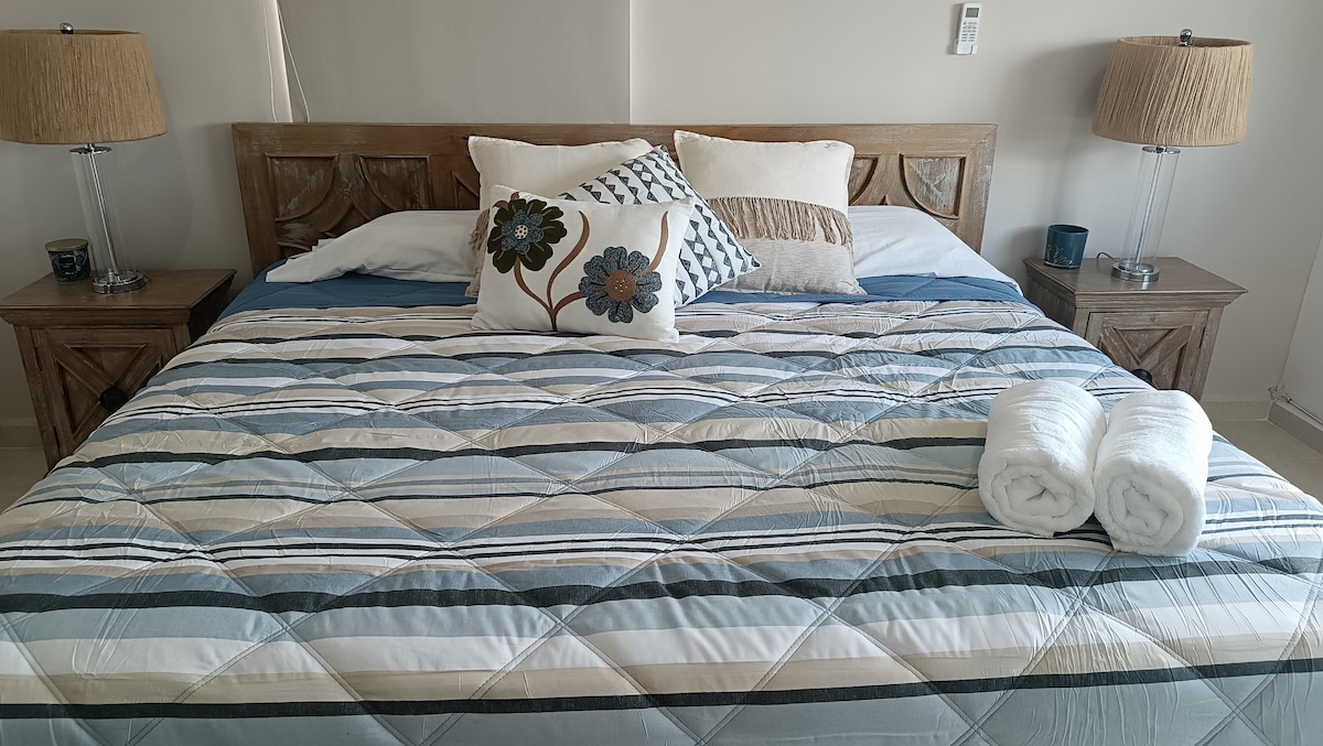 Upplifðu þægindi og glæsileika í þessari lúxusíbúð sem er hönnuð til að veita þér notalega og þægilega dvöl. Njóttu vingjarnlegs andrúmslofts í gistiaðstöðunni þökk sé loftræstingunni. Eldhúsið er með nútímalegri spaneldavél og öllum nauðsynlegum eldhúsbúnaði til að útbúa máltíðir á einfaldan og skilvirkan hátt. Hér er sjónvarp þér til skemmtunar og háhraða þráðlaust net til að halda þér í sambandi öllum stundum.