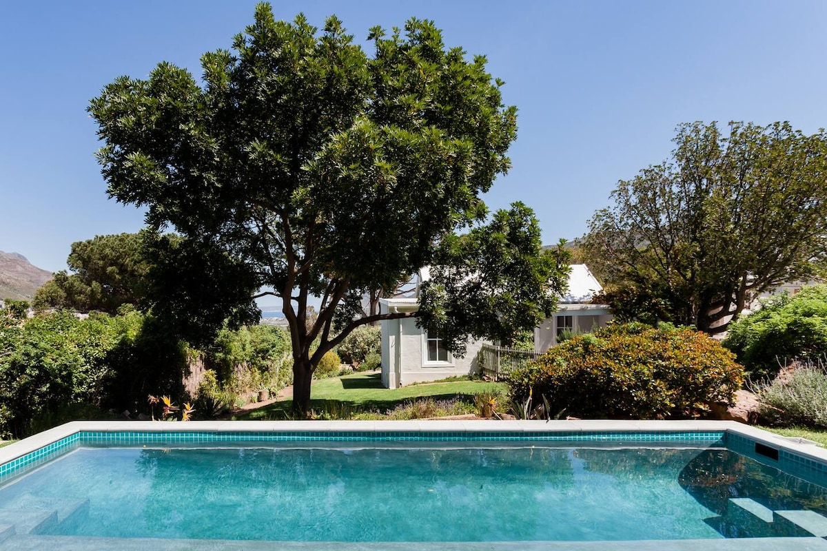 A former art studio has been converted into a beautiful little home that is attached to main house with panoramic valley view from your bed and garden. Further up in the mountain of Kronenzicht in a quiet cul-de-saq you can unsettle while having a dip in your private and heated hot tub, relax under the rain shower with stunning views on the back of table mountain and little lionshead or start your sunset walk on the beautiful sand dunes next to our property, even all the way down to Sandy Bay.
