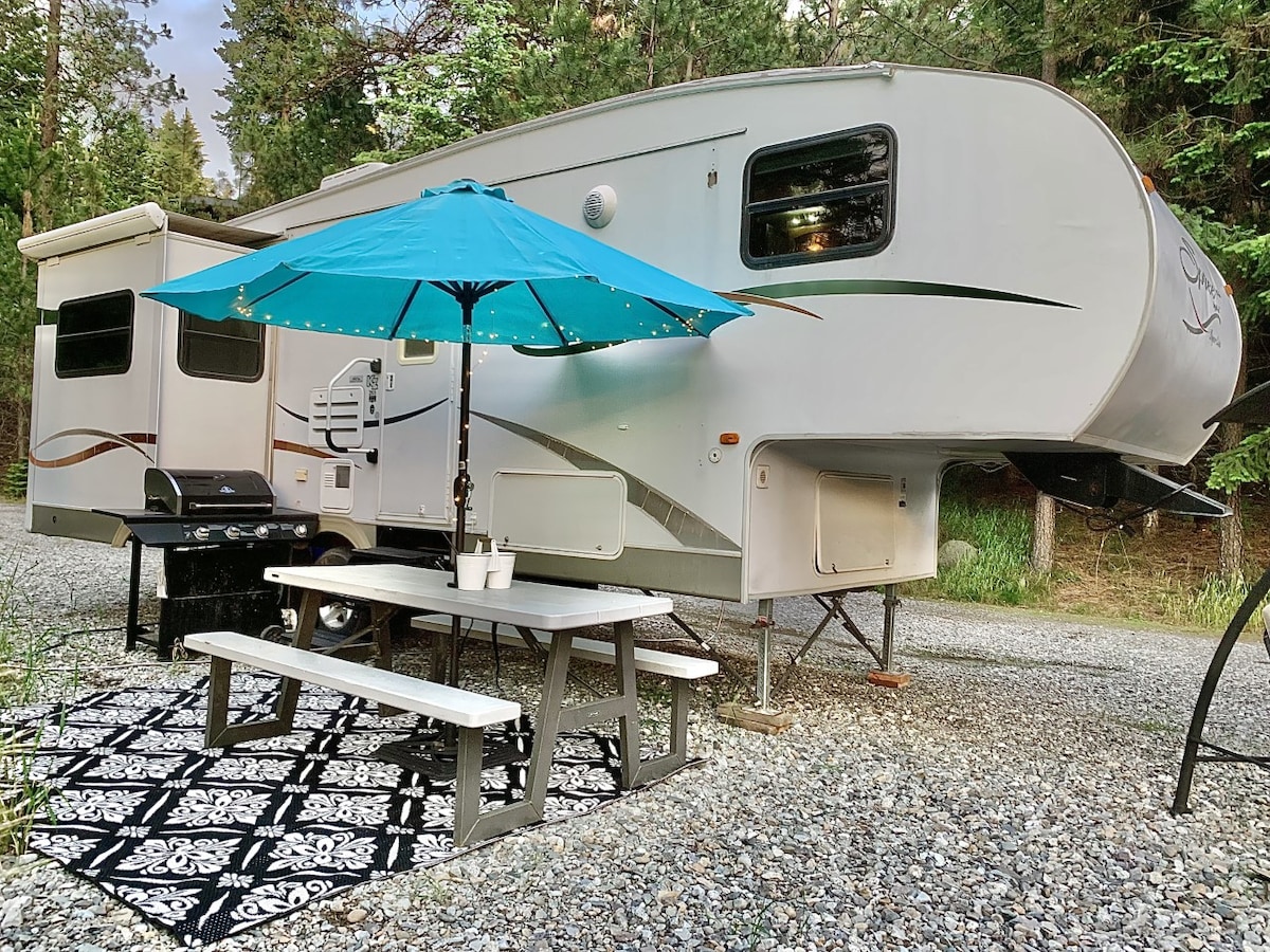 Slappaðu af nálægt náttúrunni í nokkurra mínútna fjarlægð frá Silverwood-skemmtigarðinum! Notalega 26 feta hjólhýsið okkar frá 2021 er staðsett í friðsælum skóginum og býður upp á afslappandi afdrep eftir ævintýradag. Þessi heillandi húsbíll er staðsettur við malbikaðan veg til að auðvelda aðgengi og er á lóðinni okkar, nálægt aðalveginum og húsinu. Njóttu þess að setja upp utandyra undir Awening, þar á meðal stólum, eldstæði og eldunartoppi. Grasflötin er þægilegur staður til að slaka á. Þetta er eign sem er 100% reyklaus.