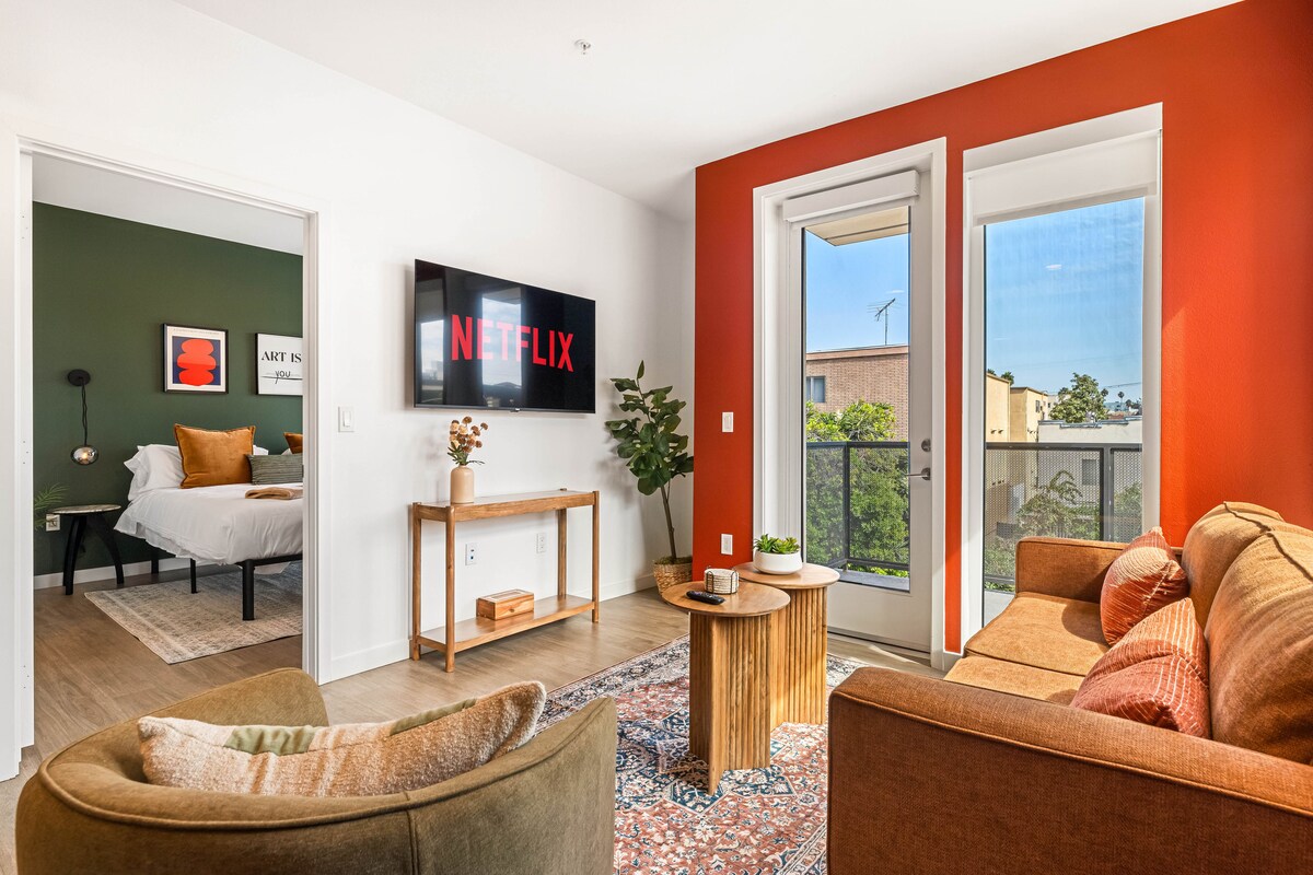 - Ljósfyllt og rúmgott 2BD+2BTH W/ Epic Views - Rúm í king-stærð, svefnsófi og aukarúm - Fullbúið eldhús með nútímalegum tækjum - Hannað herbergi + SNJALLSJÓNVÖRP - Háhraða þráðlaust net og vinnuvæn rými - Þvottavél/þurrkari í einingu - Ókeypis bílastæði við hlið - Gakktu að K-Town veitingastöðum, næturlífi og áhugaverðum stöðum - Auðvelt aðgengi að almenningssamgöngum og helstu stöðum í Los Angeles - Tilvalið fyrir fjölskyldur, hópa eða viðskiptaferðamenn - Pack'n' Play, High-Chair & Baby Bath - Líkamsrækt, þakverönd, leikjaherbergi og fleira