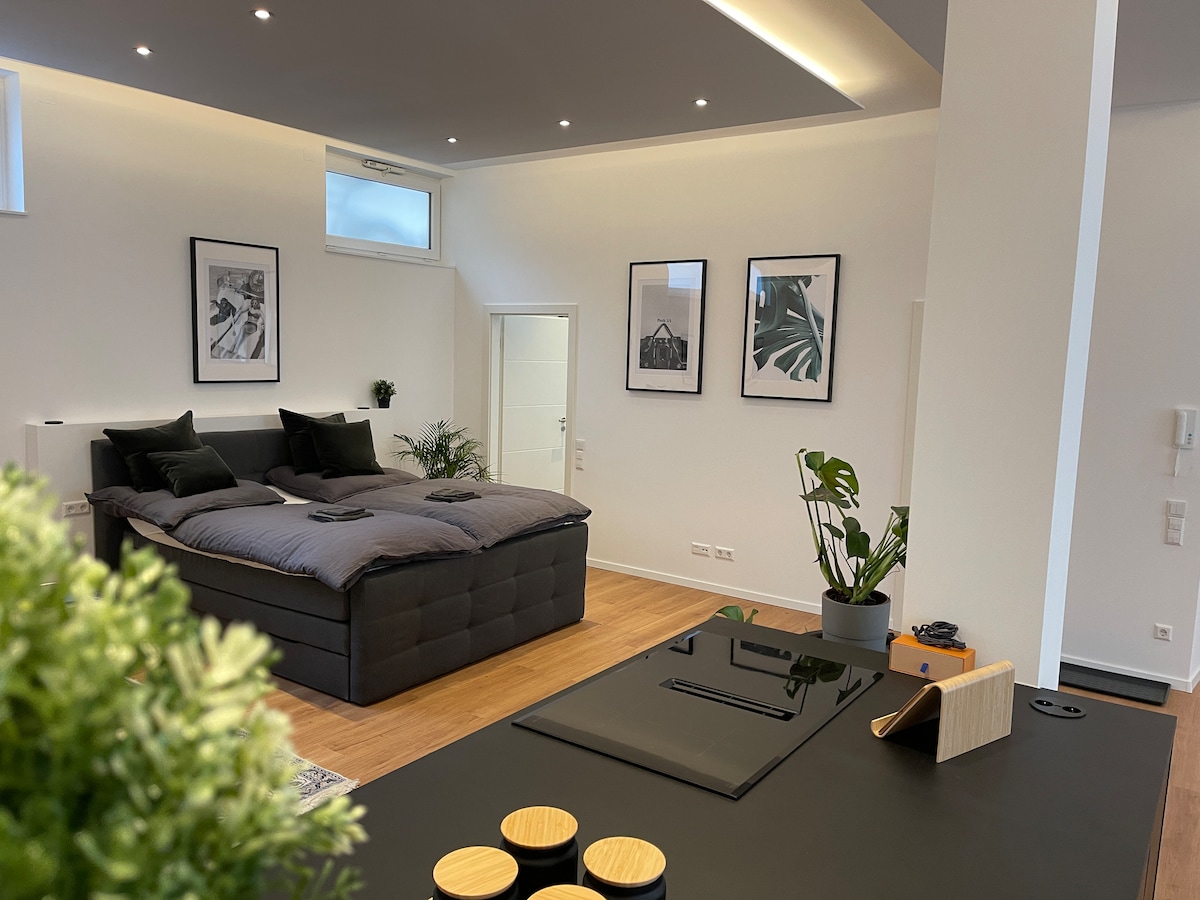 Gaman að fá þig í glæsilega fríið! Þessi rúmgóða 80 m² hönnunarloftíbúð sameinar nútímalegan lúxus og notalega búsetu sem er tilvalin til að búa, vinna eða slaka á. 🏡 Skipulag á opinni hæð fyrir einstakt andrúmsloft 🍽 Hönnunareldhús – Fullbúið 🛋 Flott hönnunarhúsgögn í tímalausu og hreinu útliti 📶 Háhraða þráðlaust net – Frábært fyrir heimaskrifstofu eða streymi Bókaðu þína einstöku loftíbúð núna og njóttu þæginda, hönnunar og bestu staðsetningarinnar í Stuttgart West!