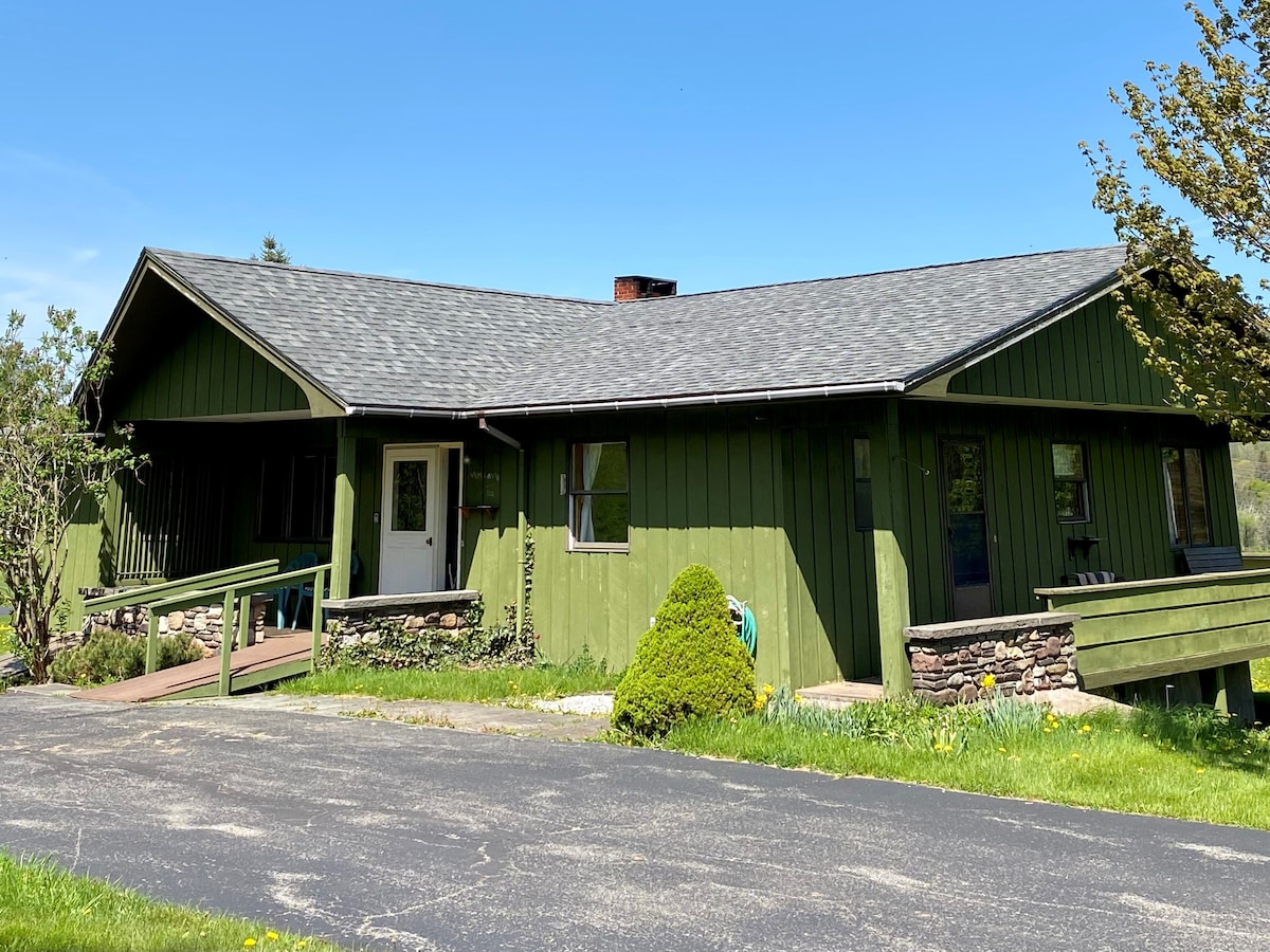 Charming open concept house nestled in the Catskill mountains 20 min E. of Oneonta. Exquisite Views! (**Adjacent to motorcycle racetrack. It's not visible, but noisy in daytime 9am-5pm 4-5 days/wk.) Enjoy a morning read in our comfy sofas and armchairs or get cozy by the gas fireplace at night. Explore our 20-acre property or relax out on the wide, sunny lawn. Outdoor table and chairs by the firepit are perfect for an evening meal overlooking the beautiful, ancient Catskill Mountains.