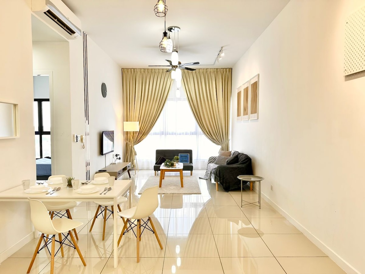 Einstök dvöl með aðstöðu í dvalarstaðnum í Kota Kemuning. Aðstaða: - Risastór sundlaug m/ nuddpotti - Aðskilin grunn laug fyrir börn m/ vatnsrennibraut - Líkamsræktarsalur og setustofa Eining: - Fullbúið eldhús, rúmgóð stofa m/ sófa og UHD sjónvarpi. - Þægileg rúm með stóru teppi og fjaðrakoddum. - Minimalist baðherbergi m/ vatnshitara. - Þráðlaust net og ókeypis bílastæði eru í boði. Þægileg staðsetning: - í göngufæri við matvörubúð og veitingastaði - stutt akstur til Klang, Subang, PJ, KL