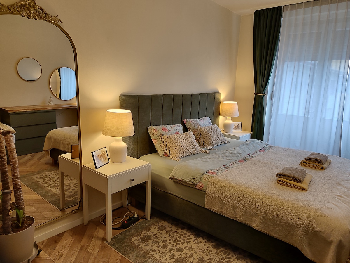 Mint&White stúdíóið sameinar nútímalega hönnun og heimatilfinningu. Það er staðsett á rólegum stað nálægt miðbæ Banja Luka. Tilvalið fyrir pör, ferðalanga sem eru einir á ferð eða gesti í viðskiptaerindum. Njóttu hreinlætis, þægilegra hvítra rúmfata, hraðs þráðlauss nets, ríkulegs sjónvarpsmyndasafns, útsýnis og ókeypis bílastæða í bílageymslunni. Veitingastaðir, almenningsgarður, göngubryggja, verslunarmiðstöðvar og íþróttaaðstaða eru í nágrenninu. Verið velkomin!