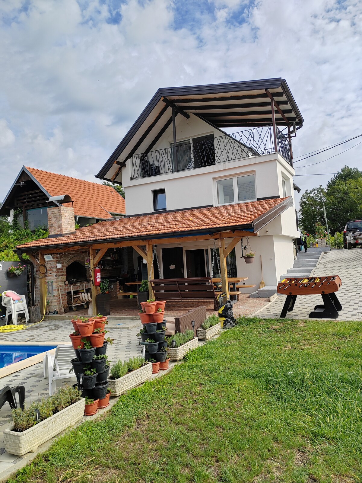 LU DA kuća is newly built house with heathed pool, located on the spacious property, in village Sveti Ivan Zelina. House is surrounded with lovely garden with BBQ. Private parking , outdoor furniture , outdoor BBQ, WI FI and airconditioner are provided on site. PLEASE NOTE: property is provided with CCTV ( CCTV is in outside area, and indoor, in common area: kitchen, dining room)