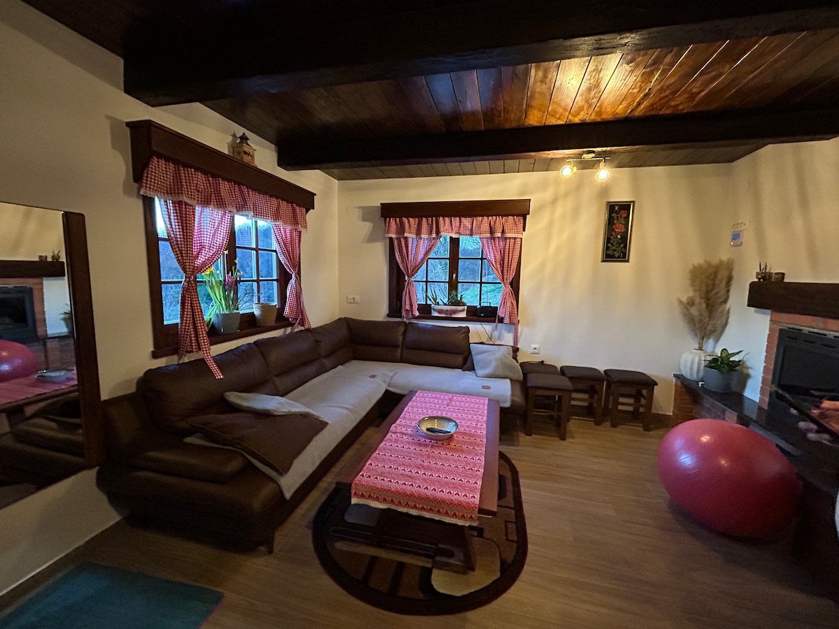 A beautifully renovated home in Zagorje. Spread across three floors, the house includes 3 bedrooms, 3 bathrooms, a fully equipped kitchen, and a welcoming living area with a fireplace. Outside, enjoy the covered terrace, BBQ area, and private hot tub, ideal for relaxing evenings surrounded by nature. Perfect for families, couples, or friends looking for peace, comfort, and a touch of countryside charm. There is a sofa bed for additional 6+2 guests on request.