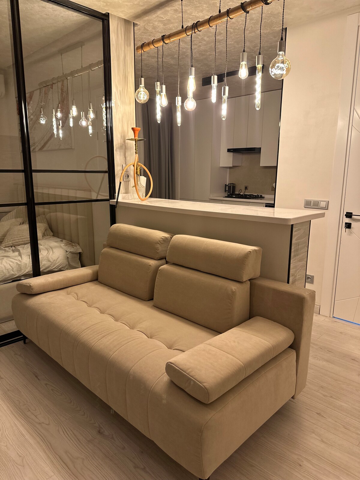 Gistu í nokkra daga eða viku! Stúdíóíbúð, 35 fm, það er svefnherbergishurð!Öll skilyrði eru í boði, internet, tæki, eldhús!Tilvalið fyrir einn en hentar lítilli fjölskyldu ! Rúmið í svefnherberginu er eitt og hálft (breidd 1,60) , í ganginum er samanbrjótanlegur sófi! ný bygging, vörður húsagarður, lyfta! Það er neðanjarðarlest í nágrenninu, stórmarkaður, pítsastaður, þjóðleg matargerð, áfengisverslanir! frá miðborginni á 7-10 mínútum með leigubíl!