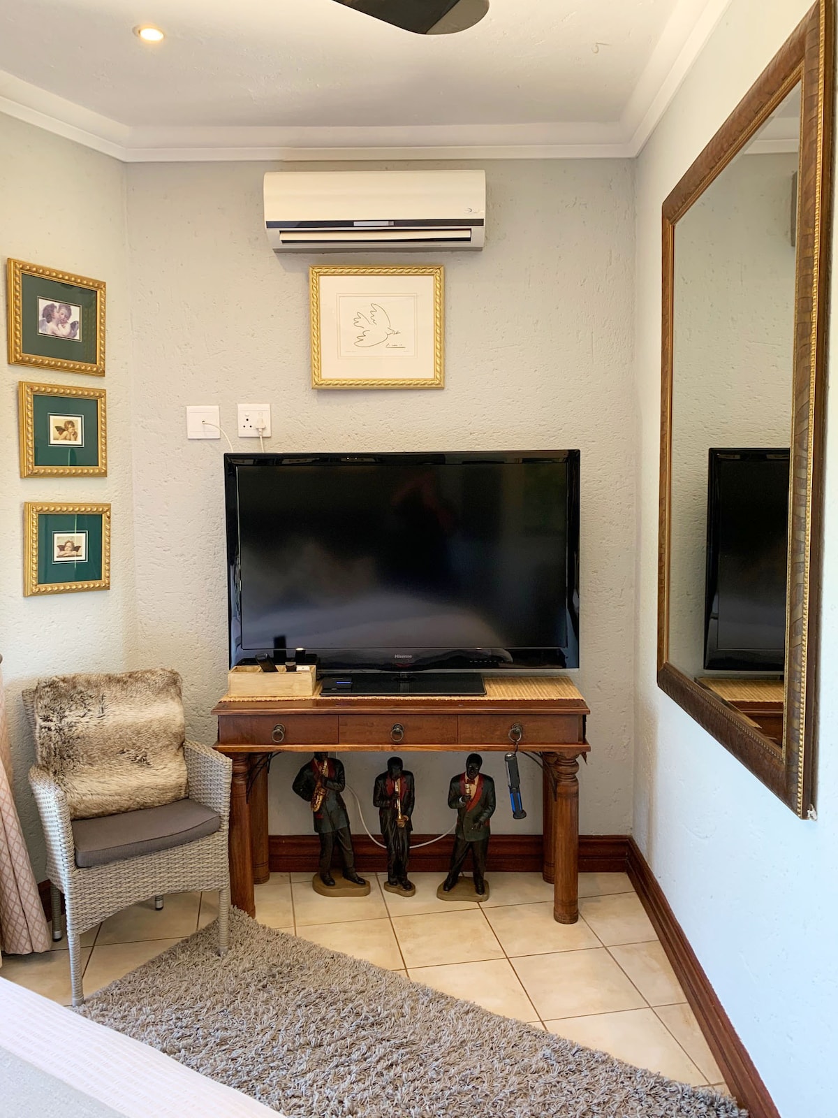 Stór íbúð með eldunaraðstöðu og 4 svefnherbergjum sem rúma allt að 9 gesti. Í hverju svefnherbergi eru öll þægindi og sér baðherbergi. Íbúðin er með stórri einkasetustofu og fullbúnu eldhúsi. Nálægt sundlauginni og lapa með braai-aðstöðu. Blandaðu því saman við hin herbergin okkar til að taka á móti stærri hópum. Tvö svefnherbergi eru með queen-rúmum, 1 svefnherbergi er með queen- og einstaklingsrúm og 1 svefnherbergi er með tveimur einstaklingsrúmum eða einu king-rúmi.