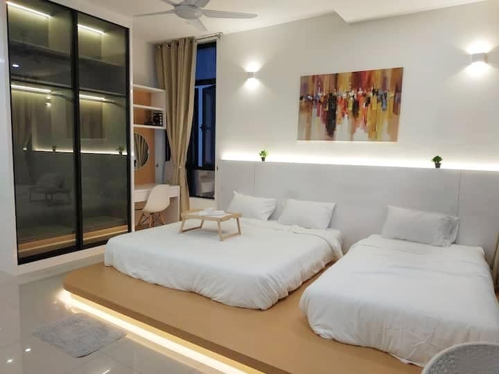 GLÆNÝ eining! Twin Galaxy Residences - Lúxusíbúð með sérstakri hönnun og flottri hugmynd. Nú er hægt að fá heilar einingar á Airbnb með 4 rúmgóðum svefnherbergjum í líflegu hjarta Johor Bahru, umkringd fjölda verslana og veitingastaða. Sökktu þér í ríkmannlegt líf með því að velja að gista í eigninni okkar núna! Við bjóðum öllum gestum upp á frábæra lífsstílsupplifun!