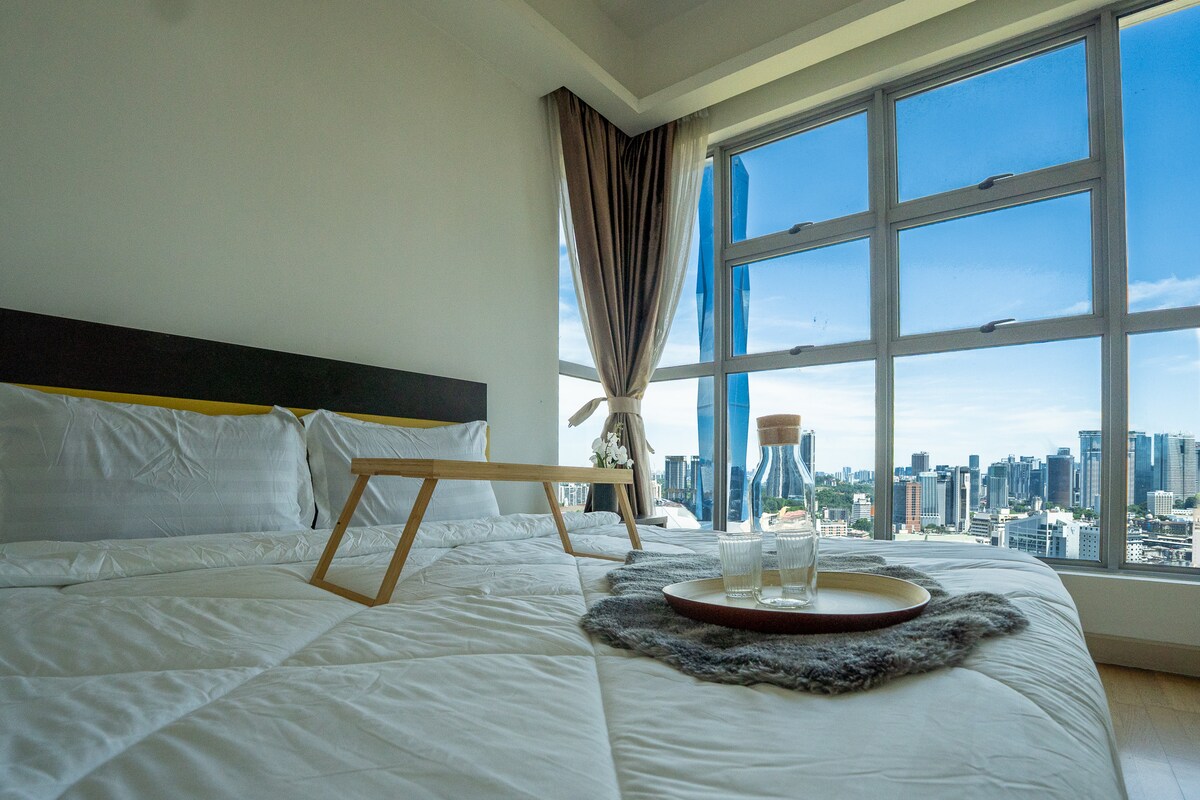 Nútímaleg og fullbúin íbúð á hæð með stórkostlegu útsýni yfir KL miðborgina. Staðsett og vel tengt í borginni (u.þ.b. innan 15 mínútna til flestra heitra staða, Twin Tower/KL Tower/Bukit Bintang/Mid Valley). Nýleg aðstaða á borð við endalausa sundlaug, íþróttahús og heitan pott á þaki 28 hæða með sama ótrúlega útsýni yfir miðbæinn. Allt þetta með þriggja flokka öryggi á staðnum. Auðvelt aðgengi að þjóðvegum(NSE/NPE/MEX) og nóg af grípa. Göngufæri við 7-11 og mat.