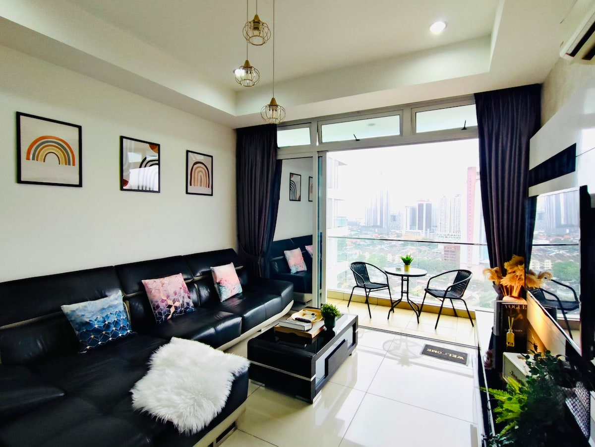 Lúxushönnun og rúmgóð 3ja svefnherbergja eining með baðkeri! Premium quality King & Queen size Beds that guarantee your good sleep here with amazing view of Midvalley Mall and JB town. Við erum með snjallsjónvarp með YouTube og Netflix öppum! Einnig vatnshreinsir vél sem auðvelda dvöl þína hér! Umkringdu þig með verslunarmiðstöð og fjölbreyttu úrvali af bragðgóðum mat á staðnum - 2 mínútna akstur til Midvalley Southkey JB KSL City Mall (verslunarmiðstöð) - 5 mín. ganga - 8 mínútur í City Square Mall & Custom JB