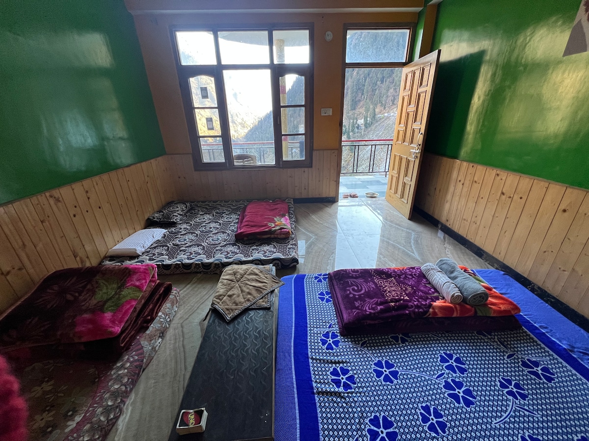 Þessi heimagisting er staðsett við magnaðasta útsýnið yfir manali. Ganga í burtu frá hadimba-hofinu og náttúrugöngunni. 3 km frá verslunarmiðstöðinni. 2 km ganga að gömlu manali-brúnni. Eignin okkar er 2 bústaðir þar sem við erum með 2-3 herbergi hvert með einkasvölum og fallegum sætum utandyra. Þessi er á fyrstu hæð. Við erum með matreiðslumann í húsinu þar sem þú getur fengið allt sem er pantað eða valið úr matseðlinum okkar í húsinu.